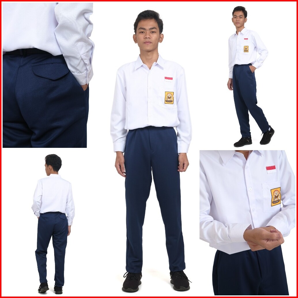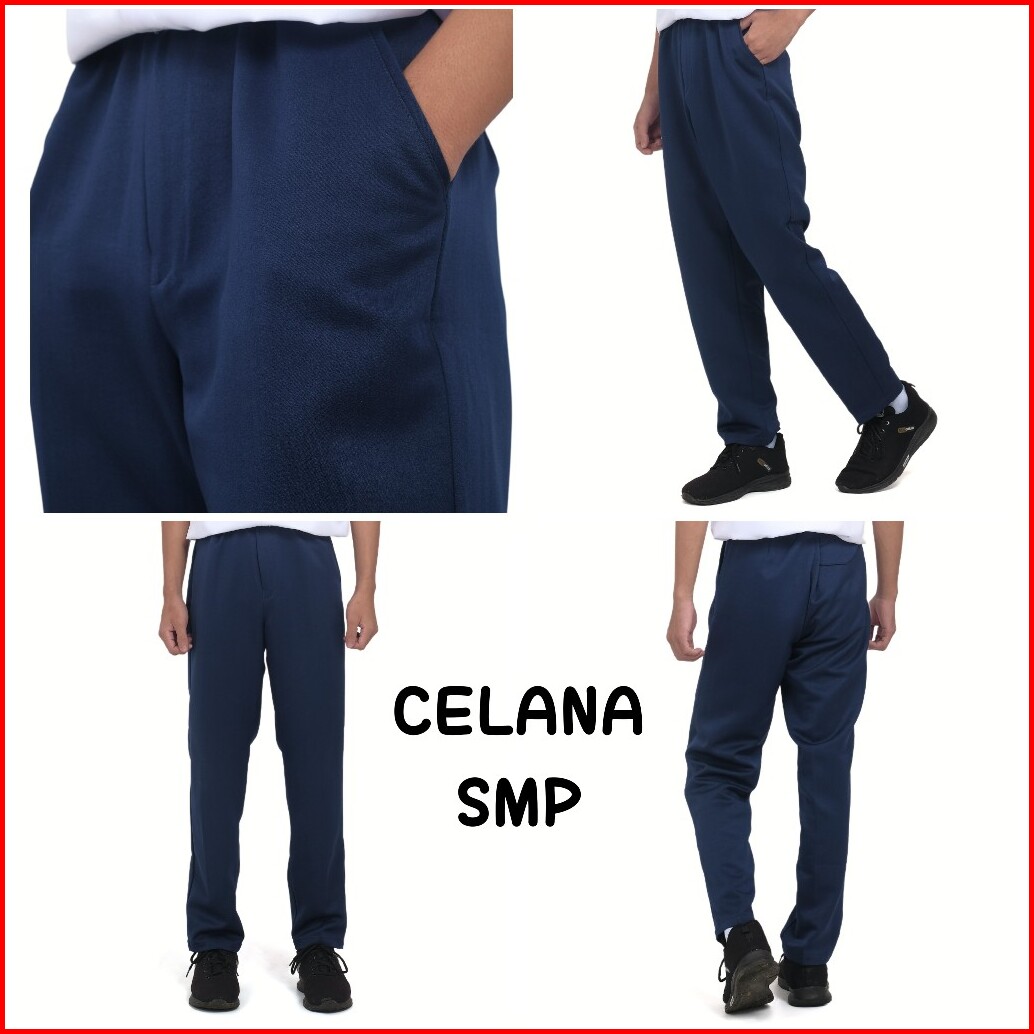 Celana Seragam Sekolah Smp Mts Dewasa Panjang Warna Biru Dan Putih Bahan Premium Tebel Dan Nyaman