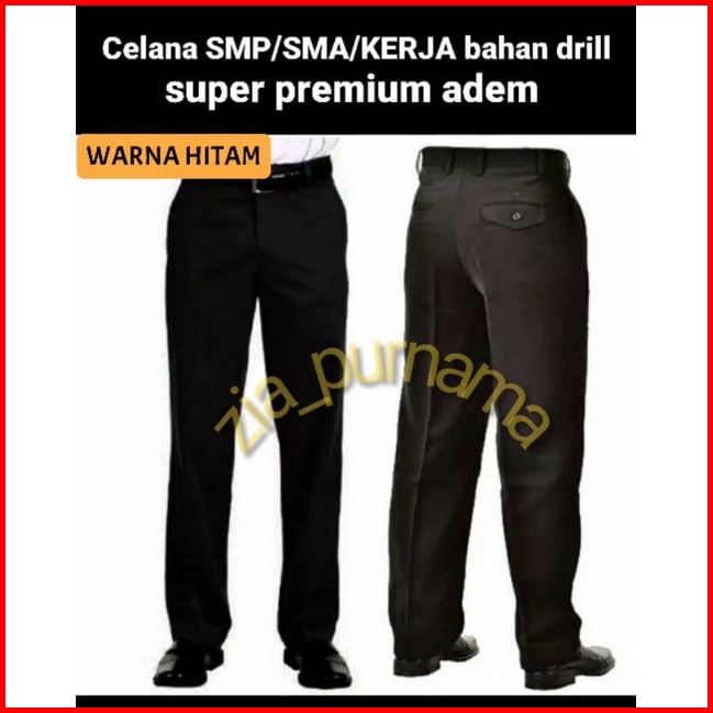 Seragam Sekolah - Celana Panjang Hitam Smp Mts Sma Kerja Bahan Drill Super
