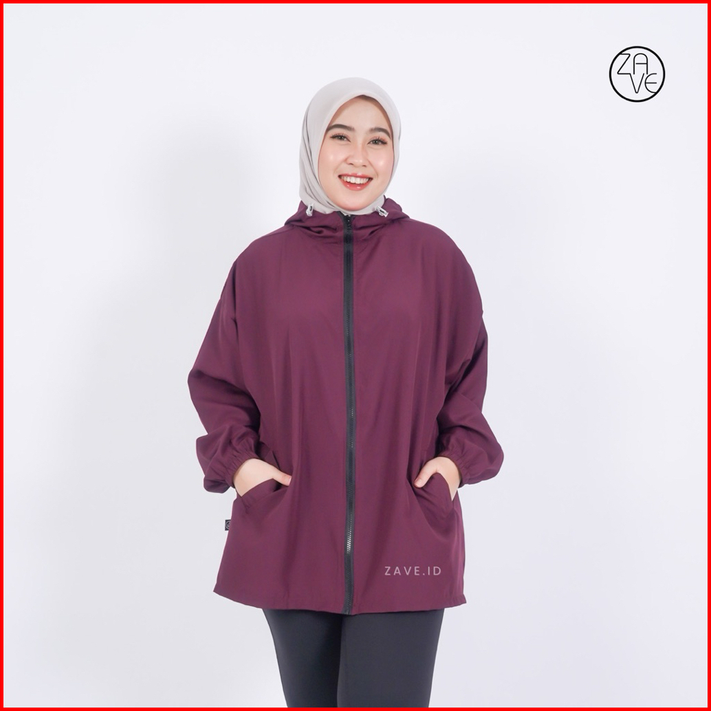 Zave - Carissa Jacket Free Pouch Jacket Olahraga Wanita Foldable Nilon Windbreaker Bigsize Oversized Ringan