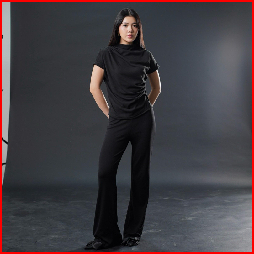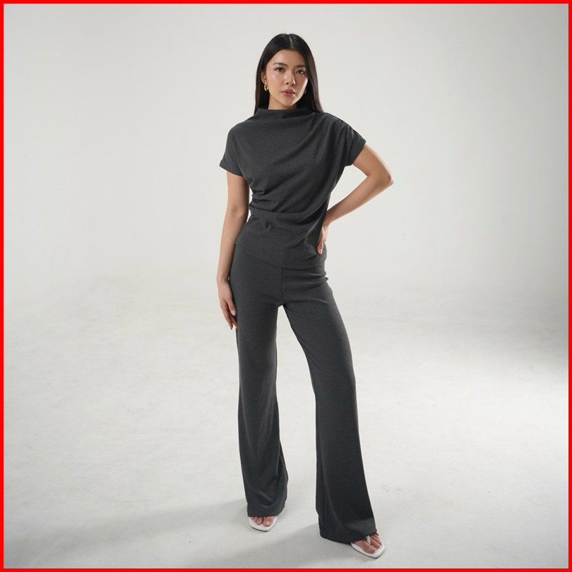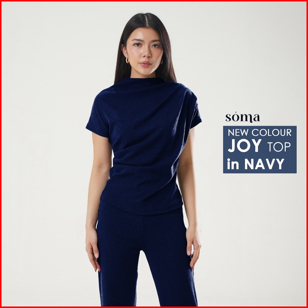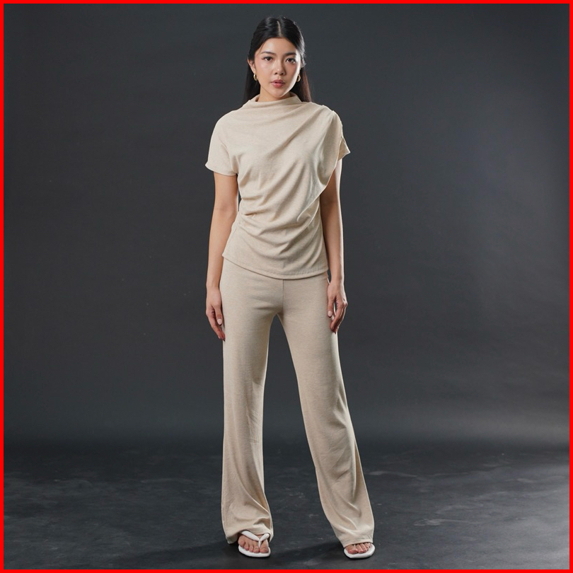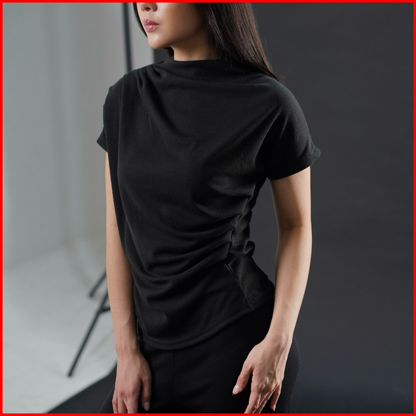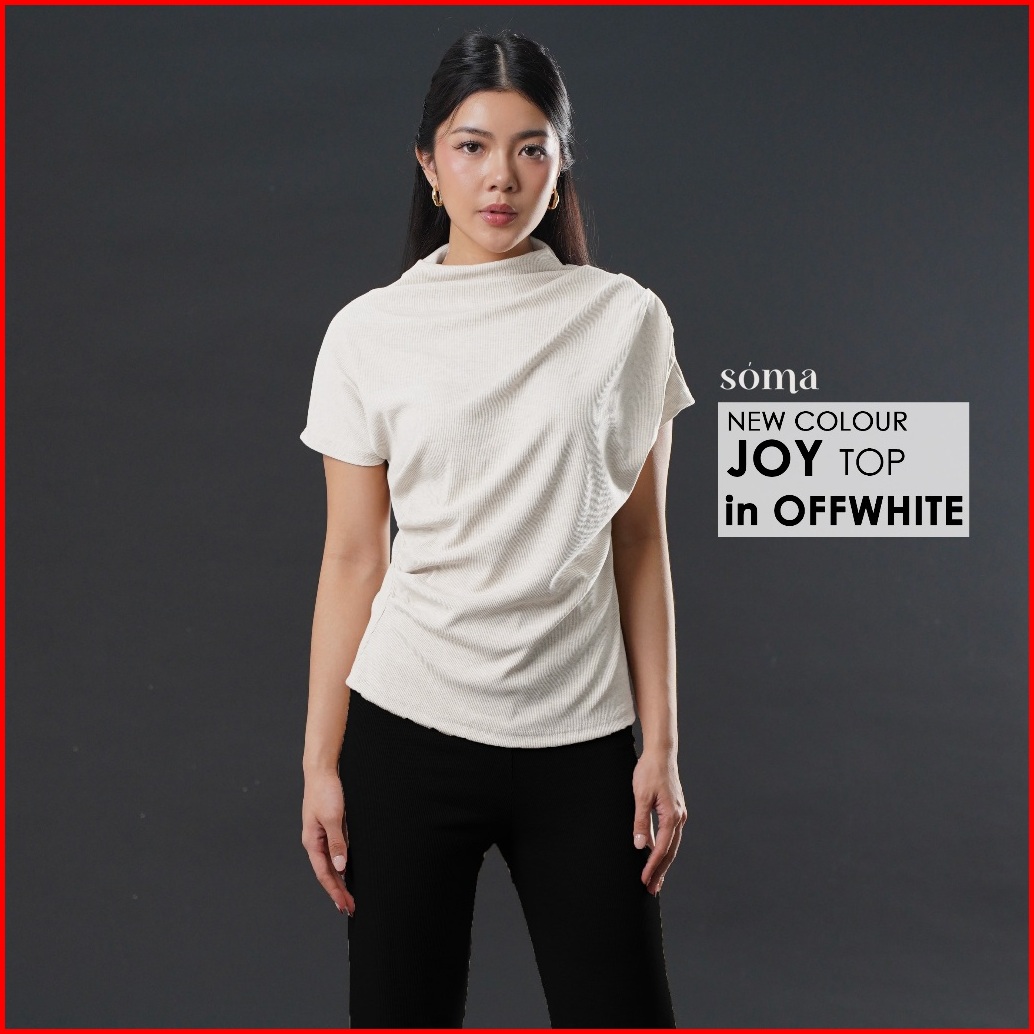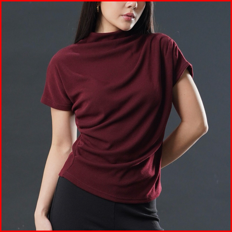 Joy Top - Atasan Knit Wanita Lengan Pendek Ruched Pleated Rample Basic Korean Top Summer Baju Knit Boat Neck Rib Wanita