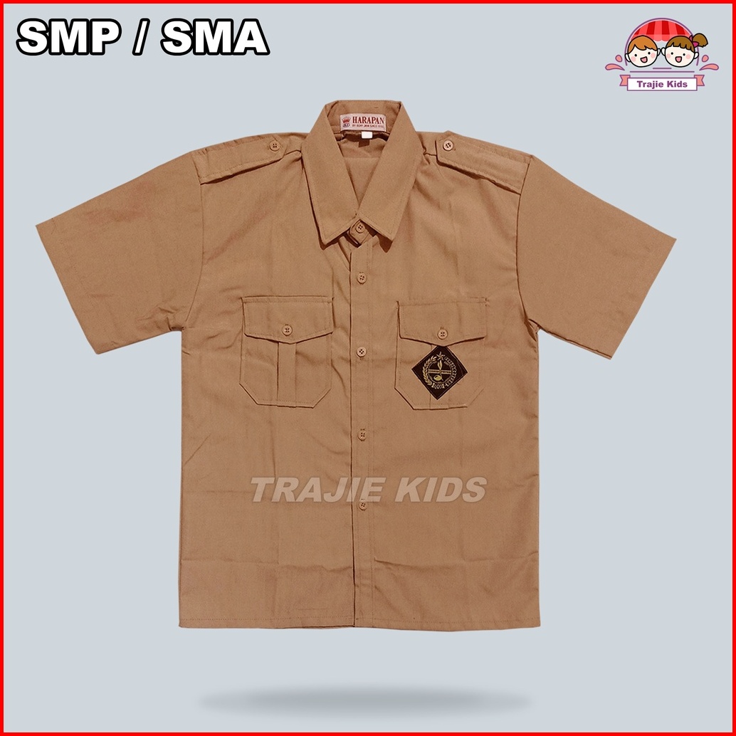 Baju Seragam Sekolah Putih Coklat Pramuka Pendek Smp Sma Bet Logo Bordir Bajusekolah Smp Sma Lengan Pendek