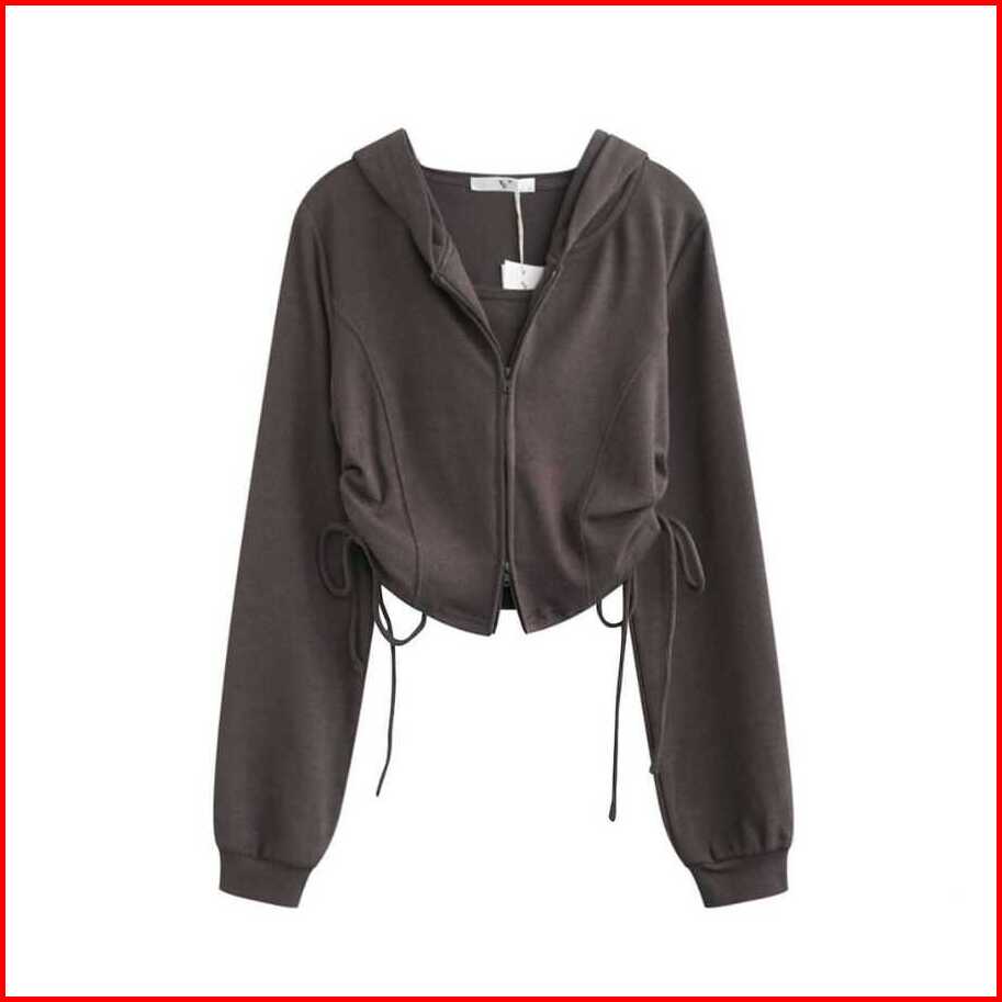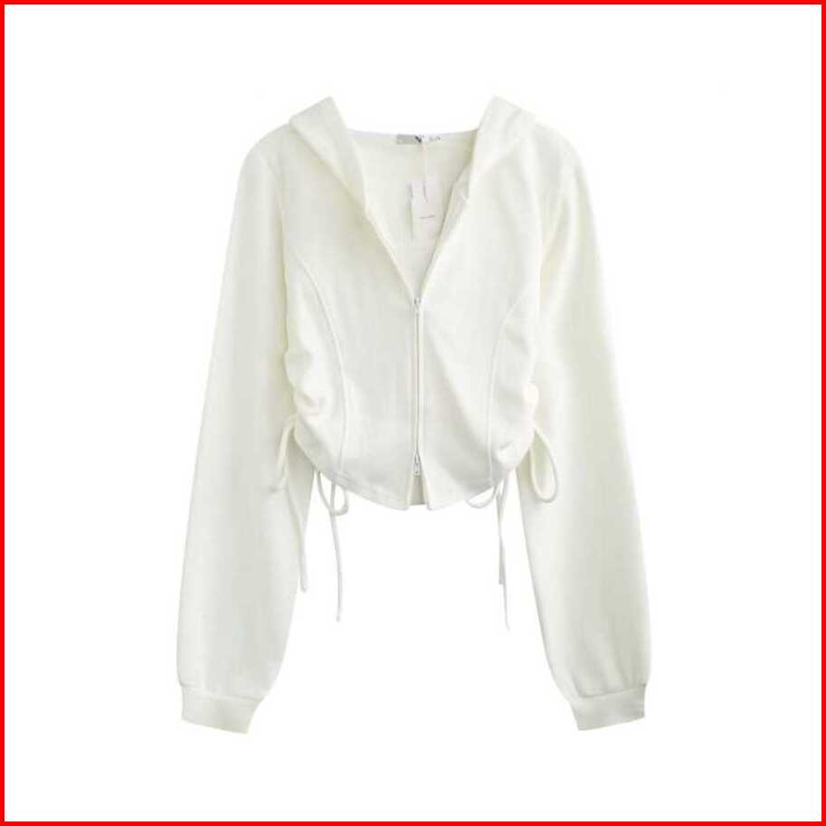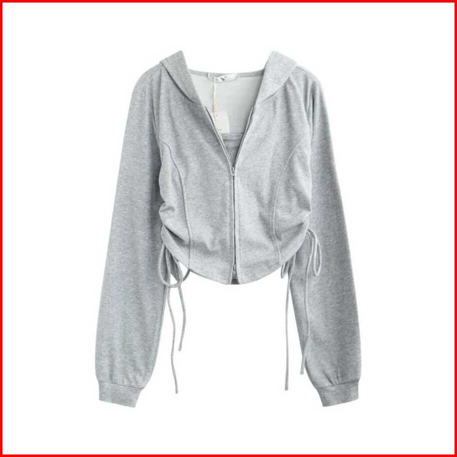 Jaket Wanita Korean Style Adella Crop Zipper Serut - Jaket Casual Atasan Wanitan Kekinian