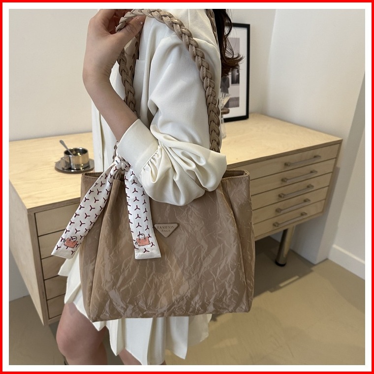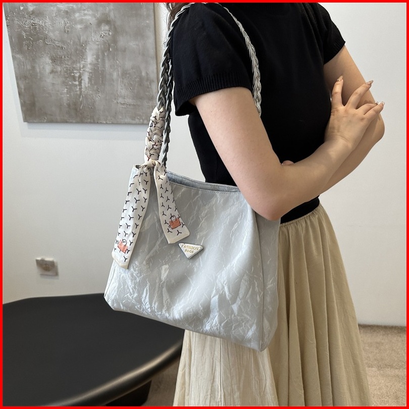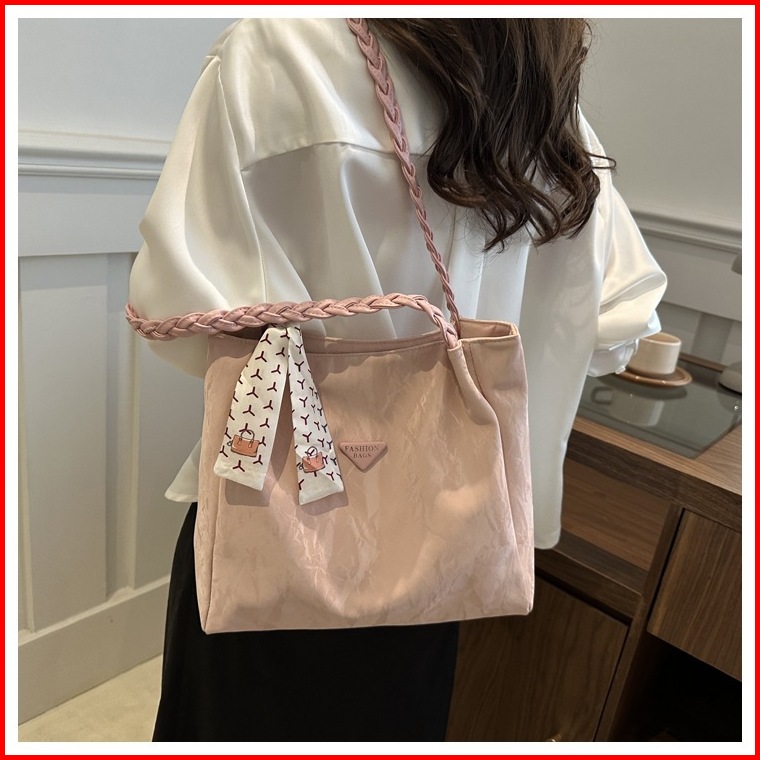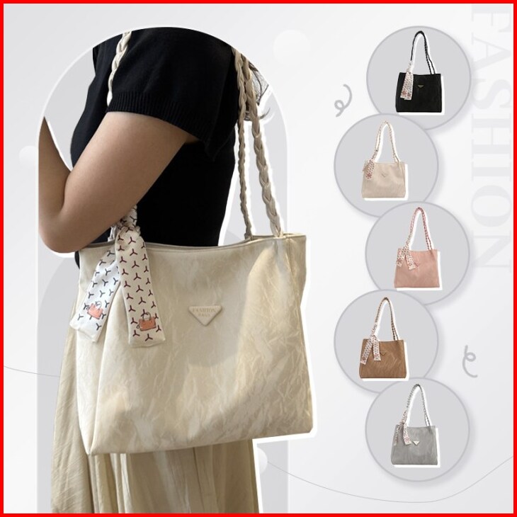 Tas Tangan Berkapasitas Besar Tas Wanita Tali Syal Sutra Tote Bag Wanita Tren Sederhana Tas Bahu Tas Komuter