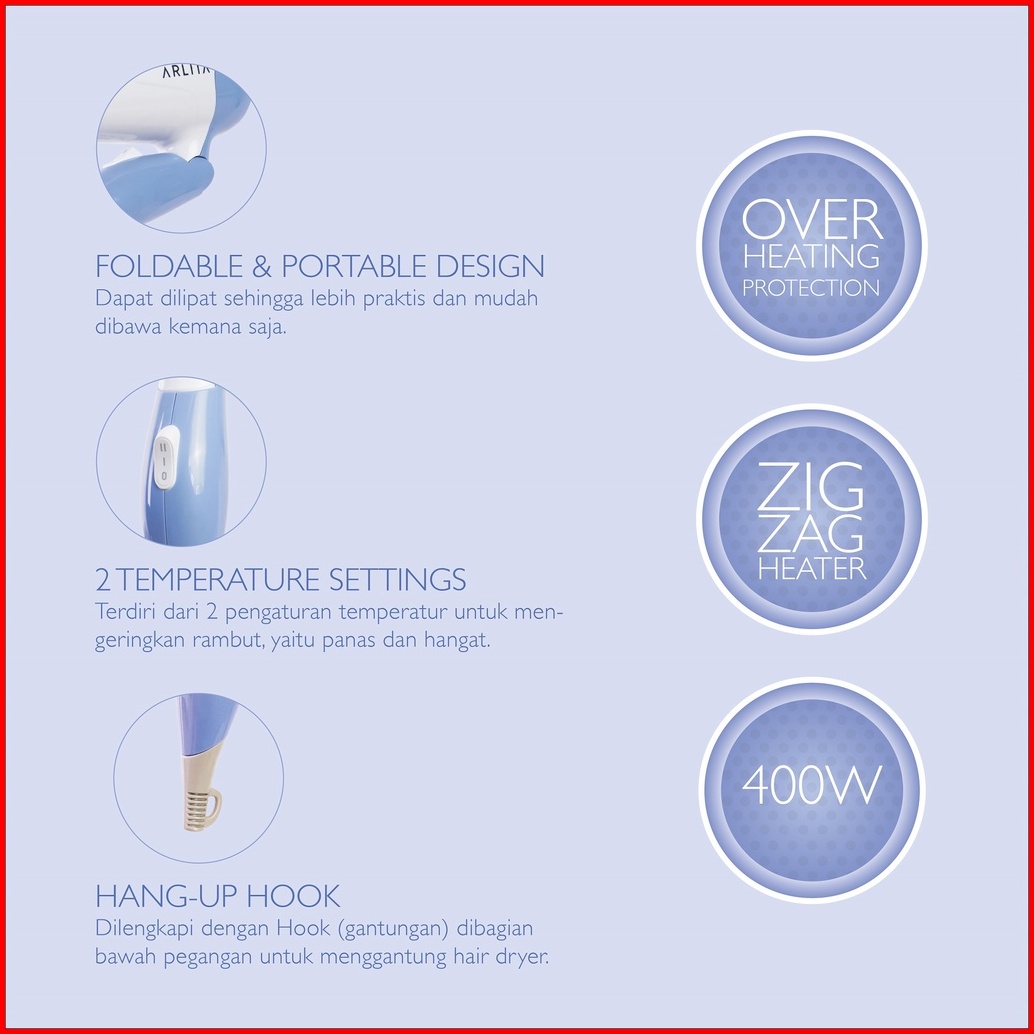 Arlita Hair Dryer Pengering Rambut 400w Hemat Daya