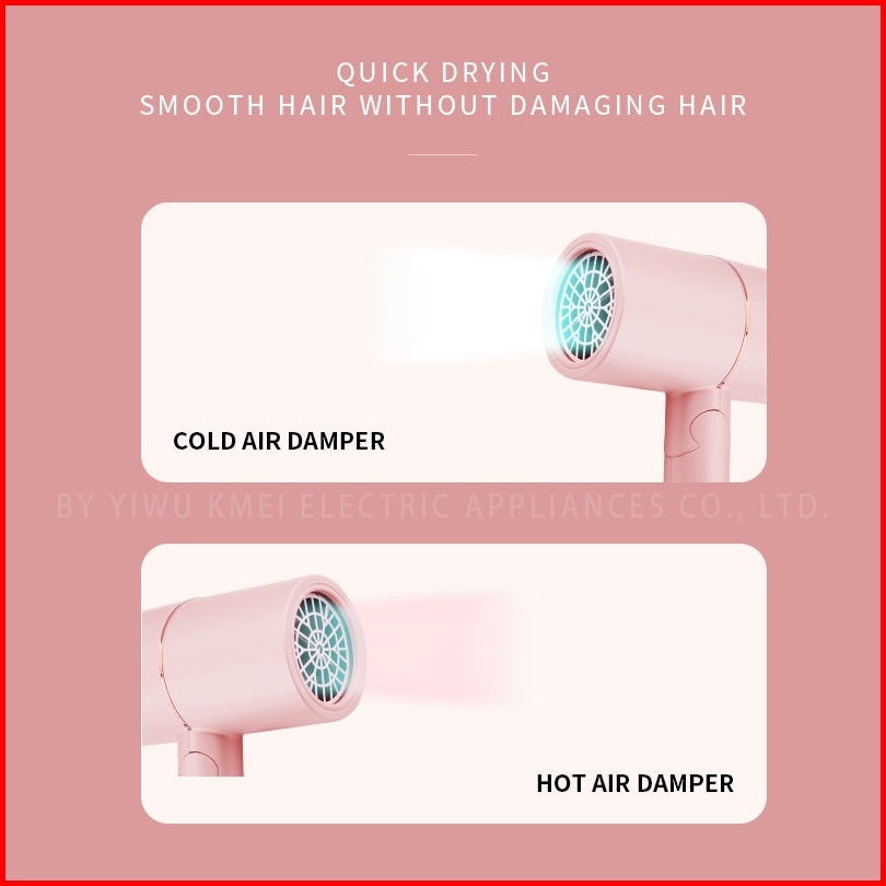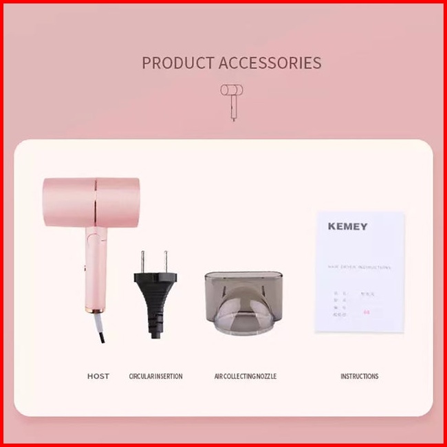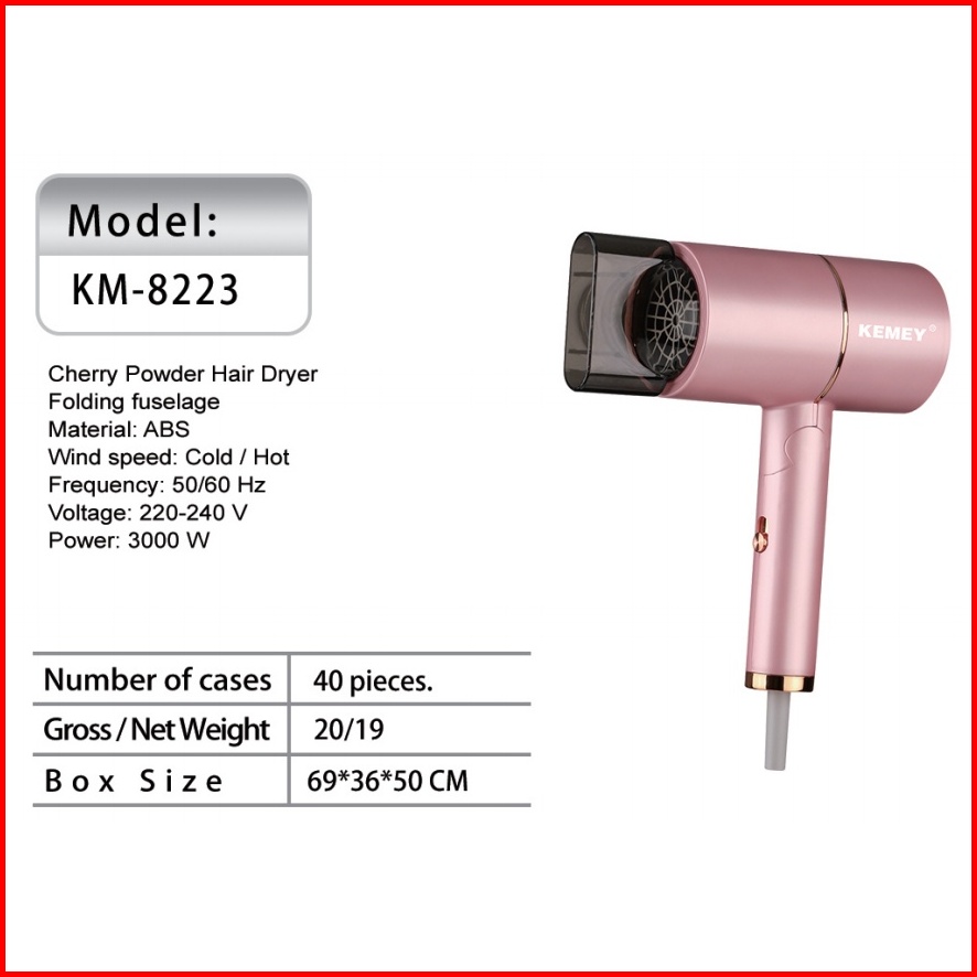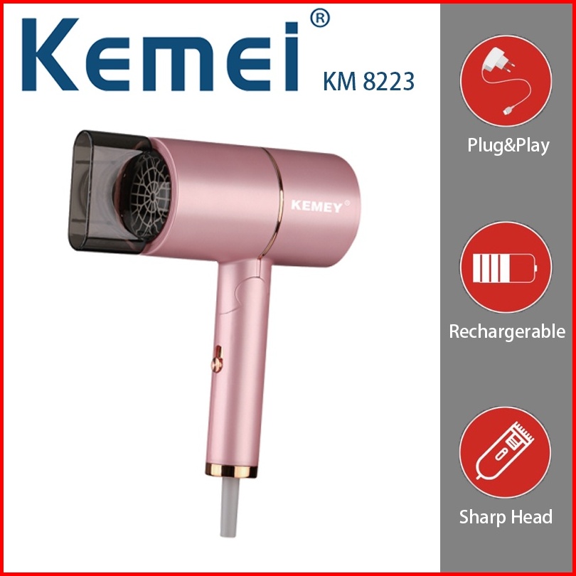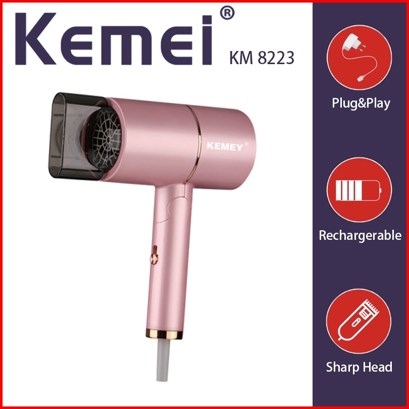 Kemei Pengering Rambut Listrik Hair Dryer Km-8223 Negative Ions Pengering Rambut Pegangan Lipat Udara Dingin Udara Panas