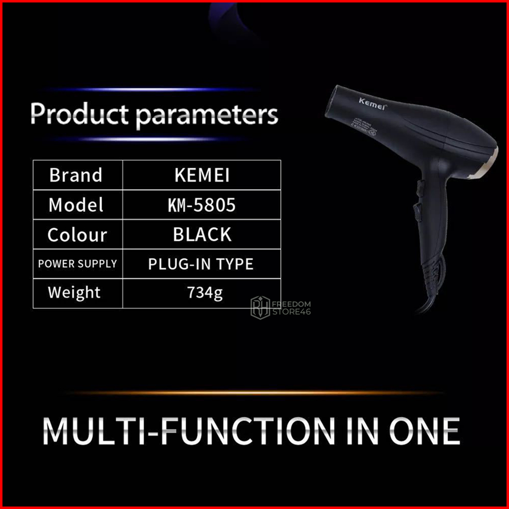 Hair Dryer Kemei Km-5805 Original Pengering Rambut 2 In 1 Panas Dingin Salon Professional Terbaru