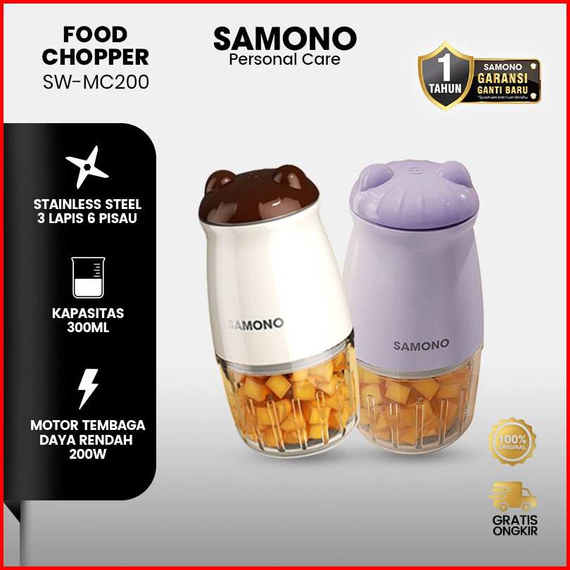 Samono Chopper Elektrik Kapasitas 300ml Wadah Kaca 6 Mata Pisau 200 Watt Garansi 1 Tahun Ganti Baru Sw-mc200