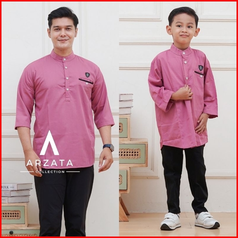 Baju Koko Couple Ayah Anak Lengan 3 4 Toyobo Kurta Elegan Atasan Modern