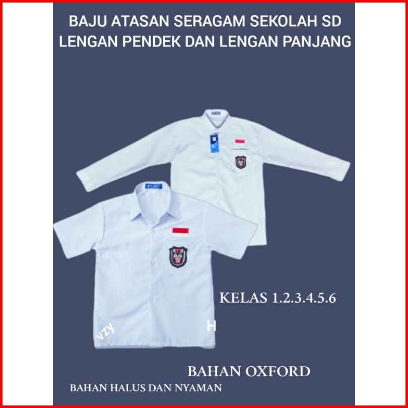 Baju Seragam Sekolah Sd Putih Kelas 1.2.3.4.5.6 Untuk Laki Laki Dan Perempuan Lengan Pendek Dan Panjang