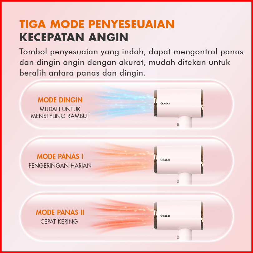 Gaabor Hair Dryer Pengering Rambut Profesional Cahaya Biru Anion Teknologi Blu-ray Pink