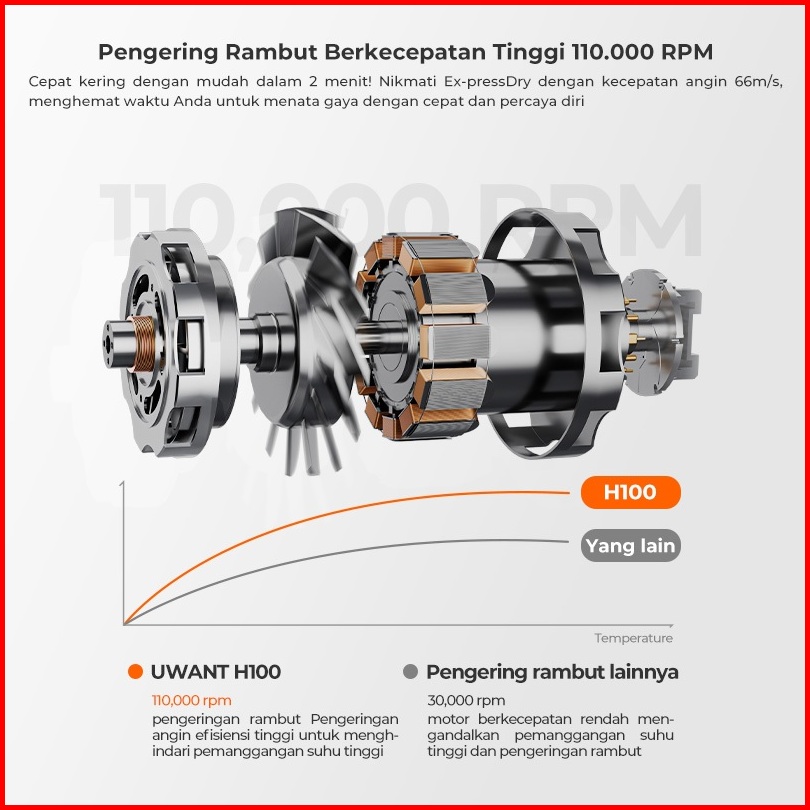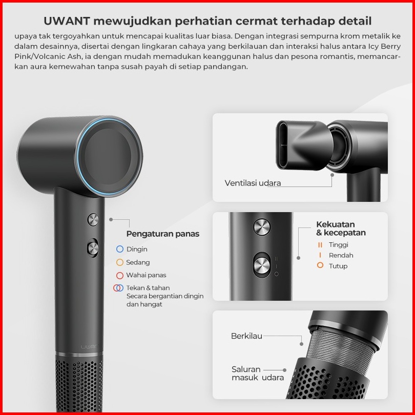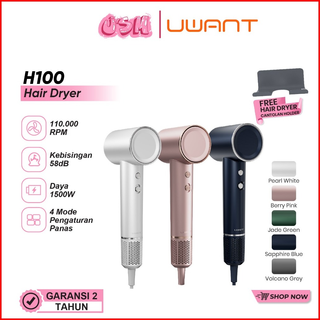 Uwant H100 High-speed Hair Dryer Pengering Rambut Fast Drying 300 Juta Ion Negatif