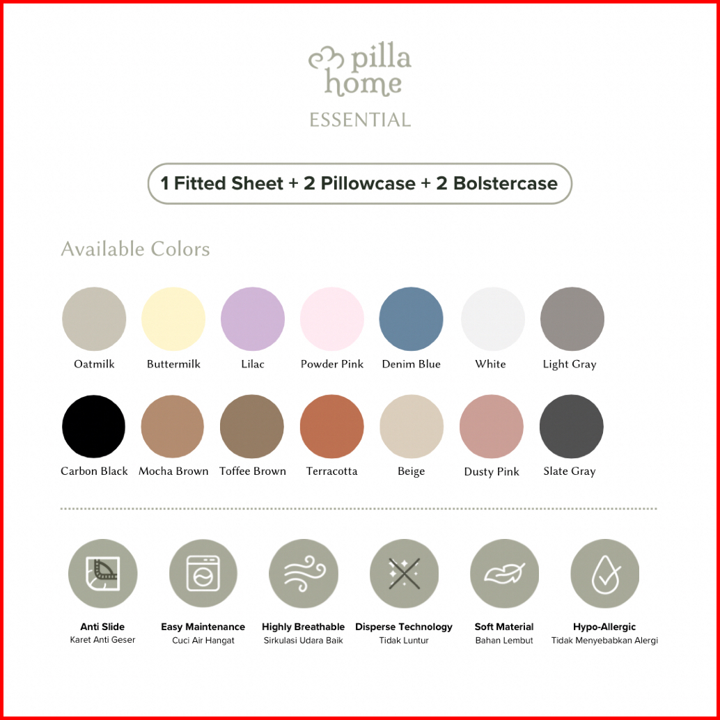 Pilla Home Sprei Set 180x200 Essential Seprei Polos Aesthetic King Halus Katun Homemade Anti Geser Seprai Estetik 180cm