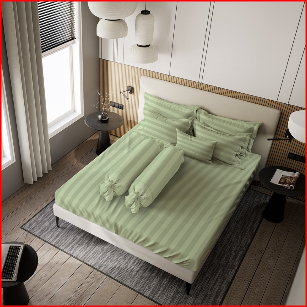 Sprei Nyenyak Premium Stripes Matcha - 200x200 180x200 160x200 120x200 100x200