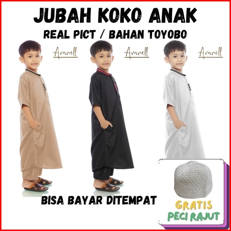 Koko Peje Bonus Peci Rajut Jubah Anak Laki Laki Baju Gamis Koko Muslim Umur 1 - 15 Tahun Pakaian Setelan Fashion Cowok S