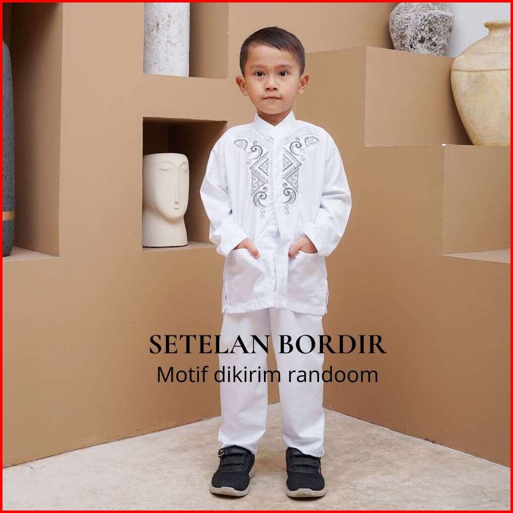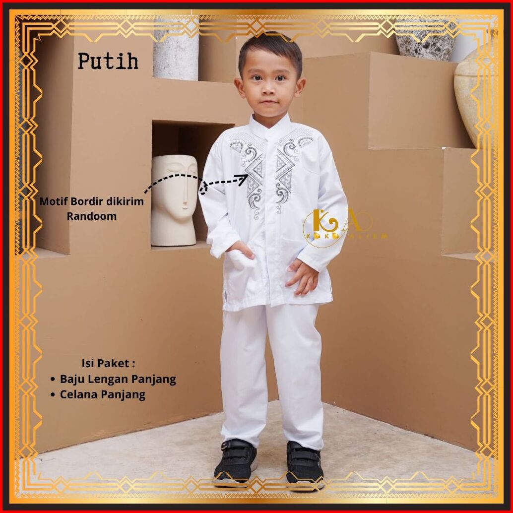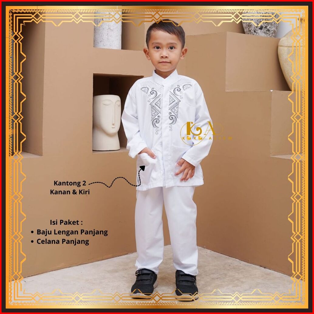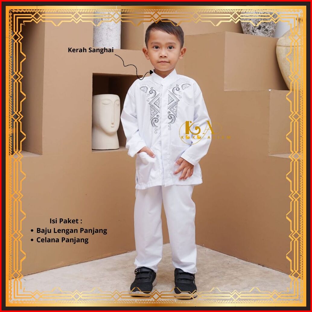 Baju Setelan Koko Anak Klasik Muslim Laki-laki Warna Putih Lengan Panjang Untuk Paud Tk Sd Mi