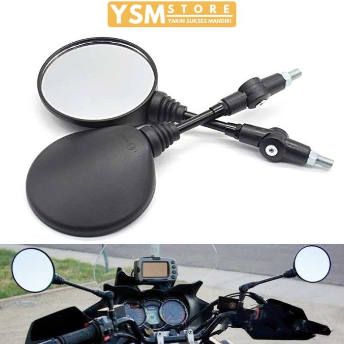 Kaca Spion Motor Spion Motor Retro Bulat Kaca Spion Classic Klasik Panjang Universal - Hitam