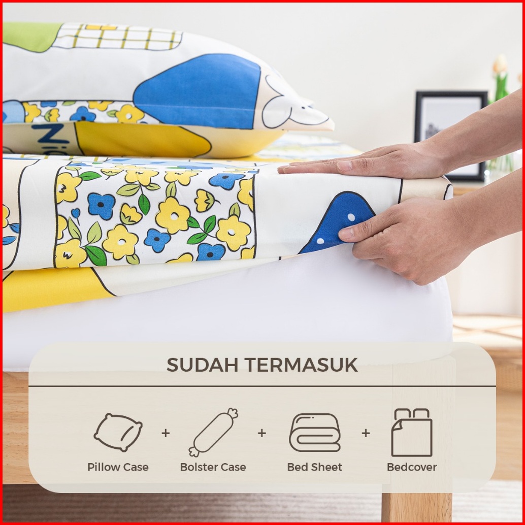 Unitwo Bed Cover Sprei Set Motif Animal Kartun Colorful Bed Cover Set Dengan Sprei Sarung Bantal Guling Motif Kartun 180