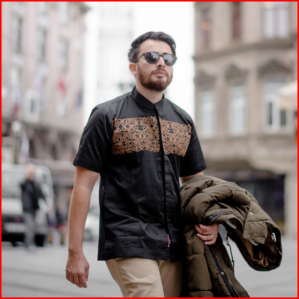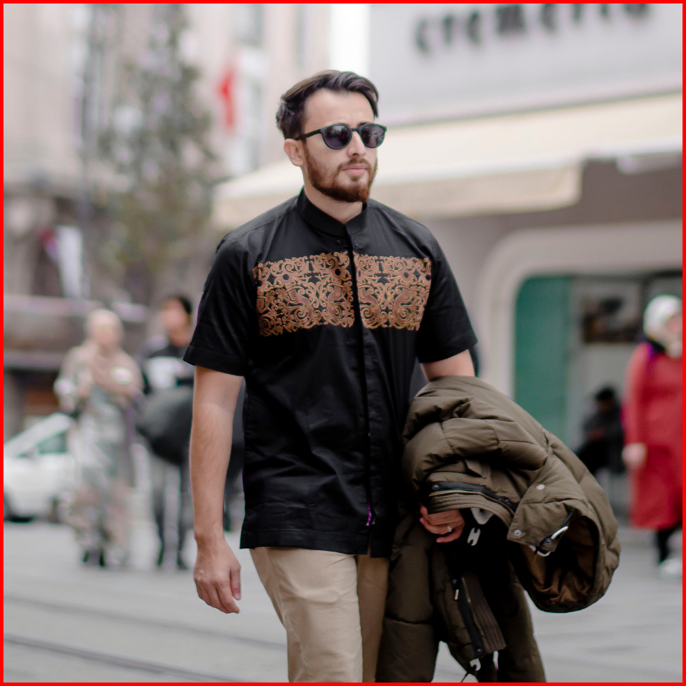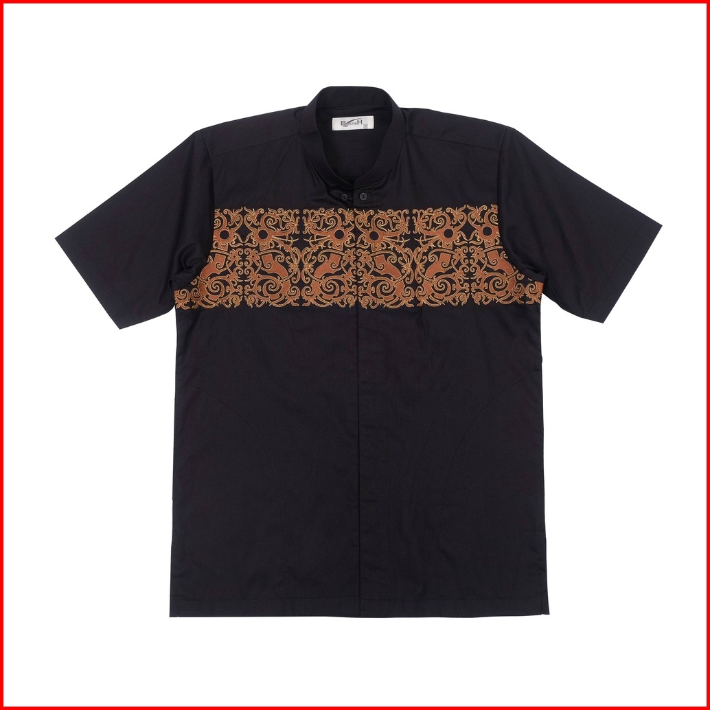 Bastoh Izmir Baju Koko Pria Dewasa Bordir Hitam Lengan Pendek