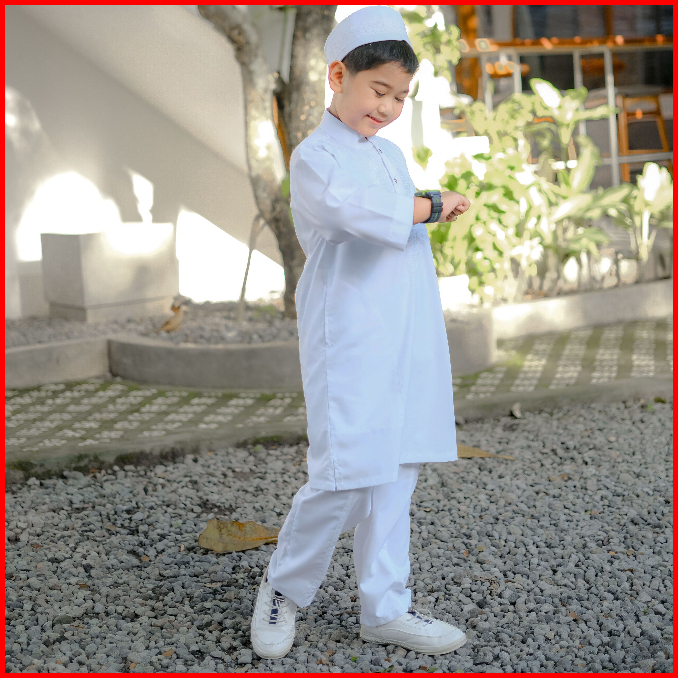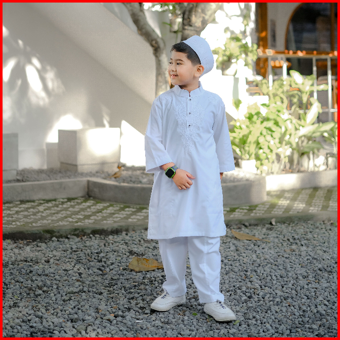 Fatih Dan Firra - Set Peci Stelan Koko Putih Anak Laki-laki Dhaval Belajar Manasik Jadi Lebih Asik