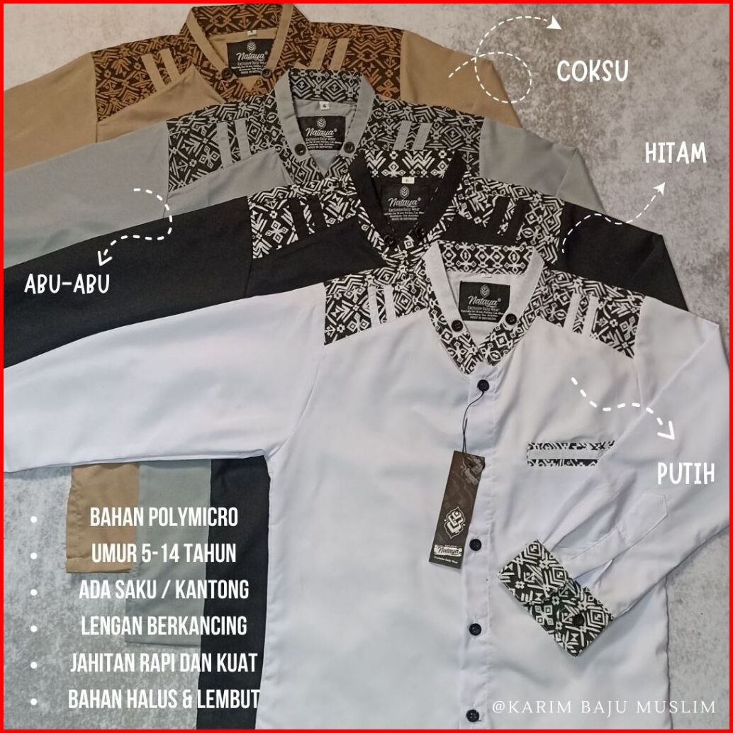 Baju Kemeja Koko Anak Kombinasi Batik Lengan Panjang Umur 5 Sampai 14 Tahun Terbaru Termurah