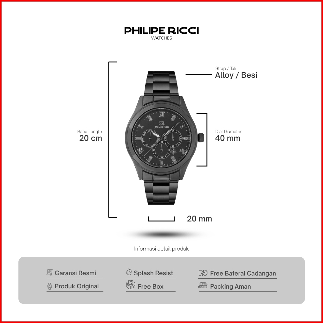 Philipe Ricci Jam Tangan Pria Besi Hitam Terbaru 100 Original Keren 8059j Men Watches Free Box