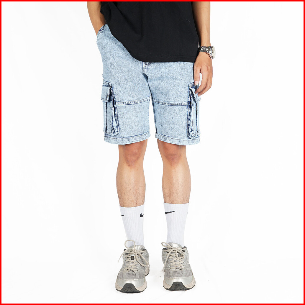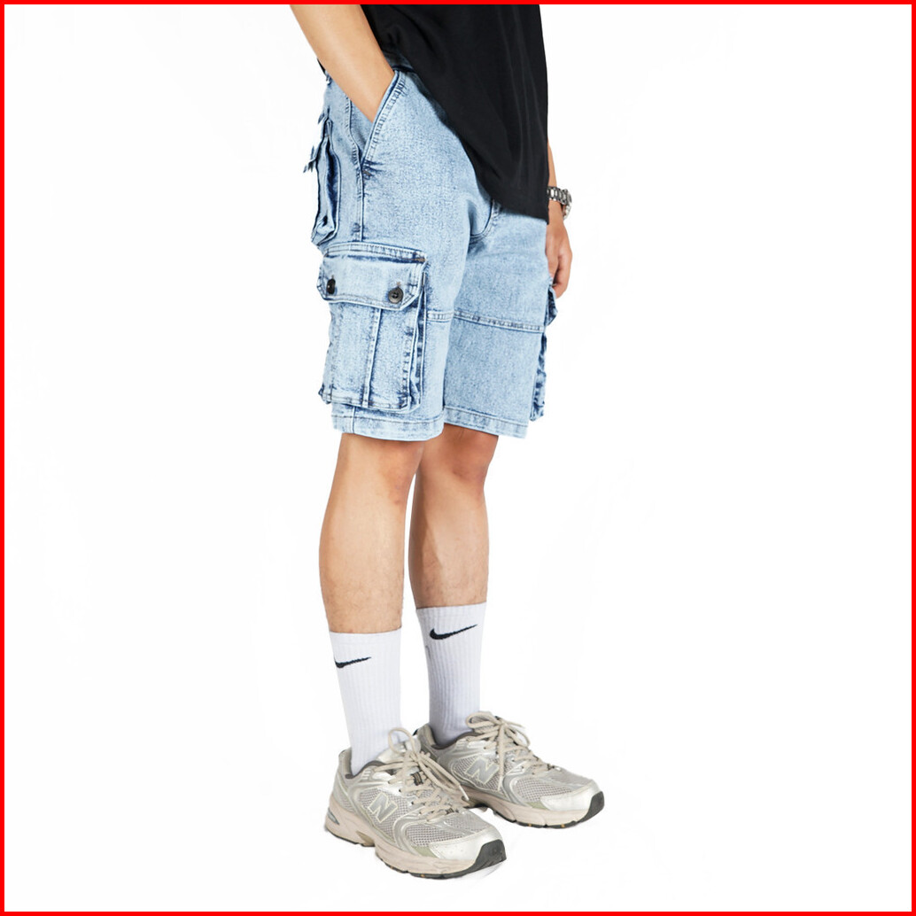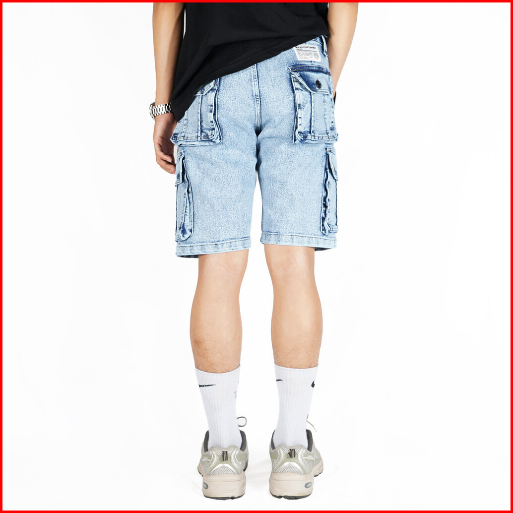 Nvsr Jeans Short Cargo Washed Pants Blue Washed