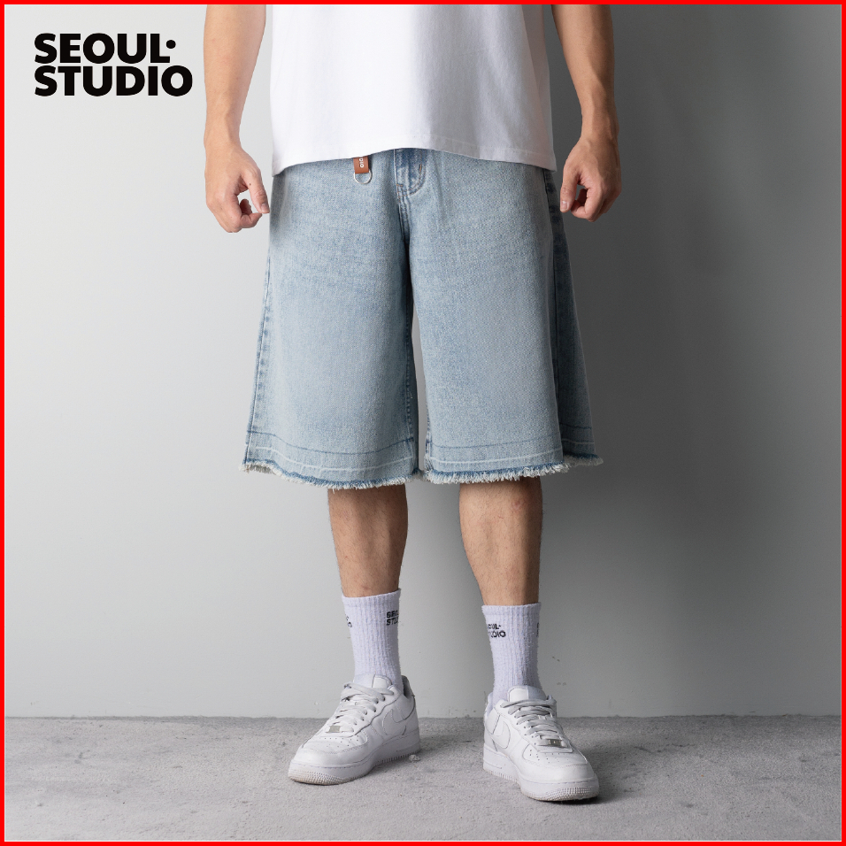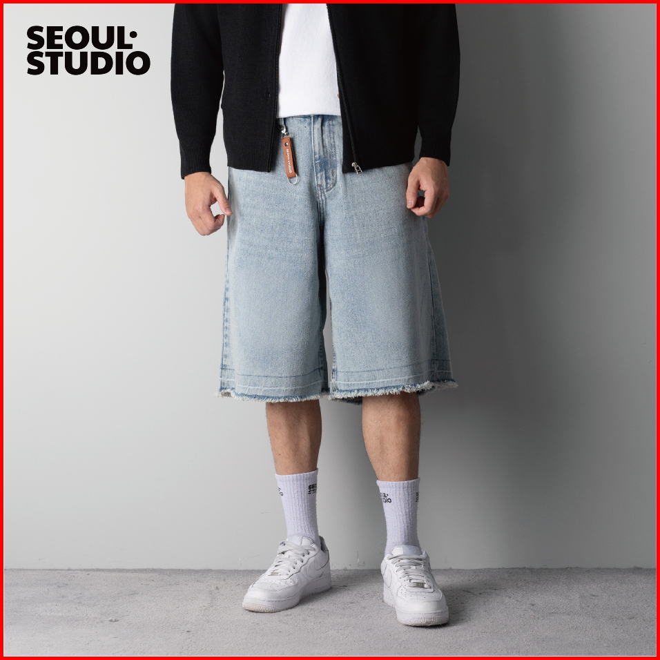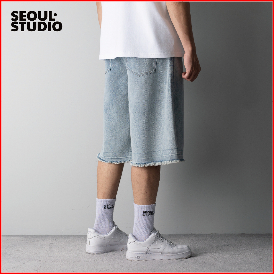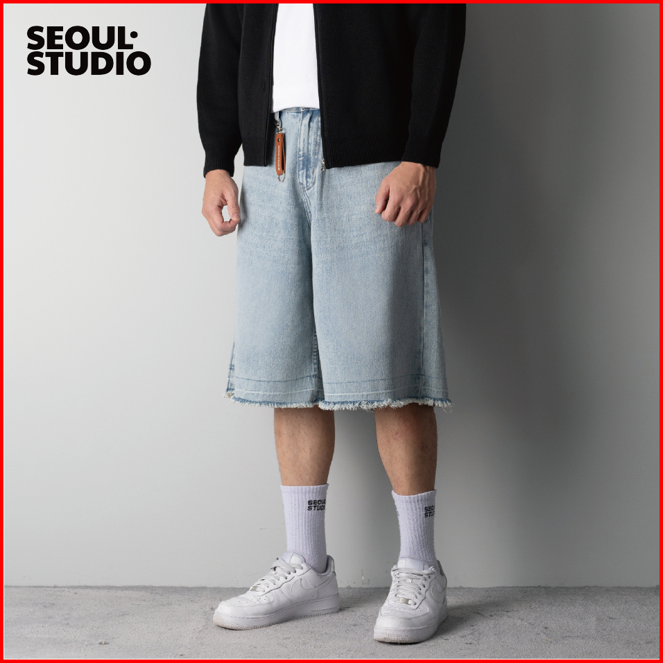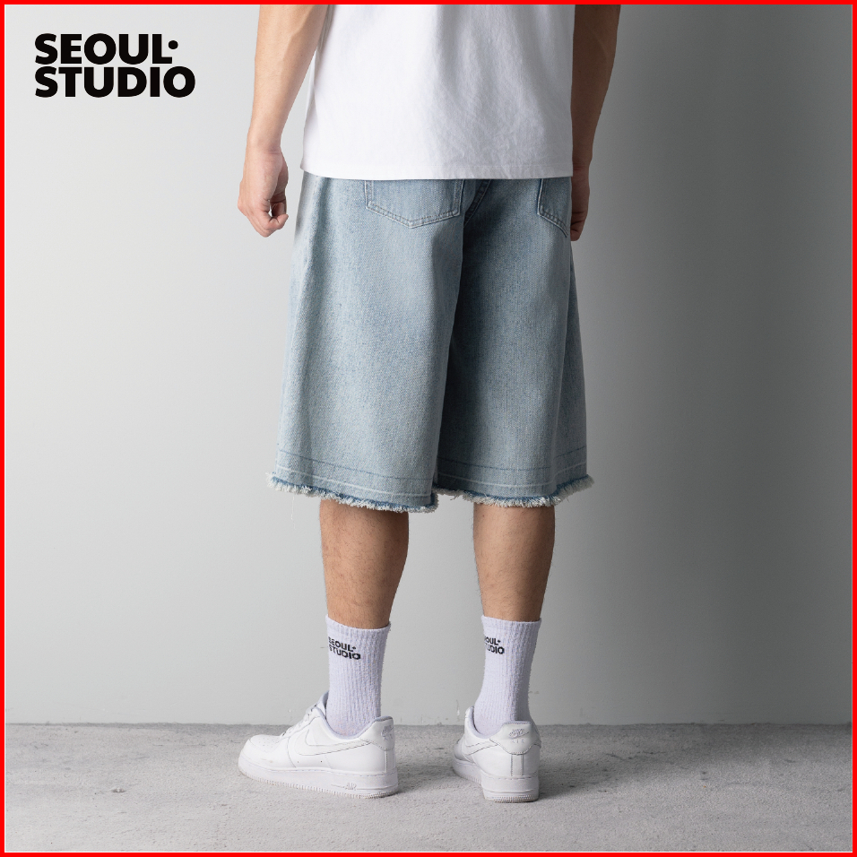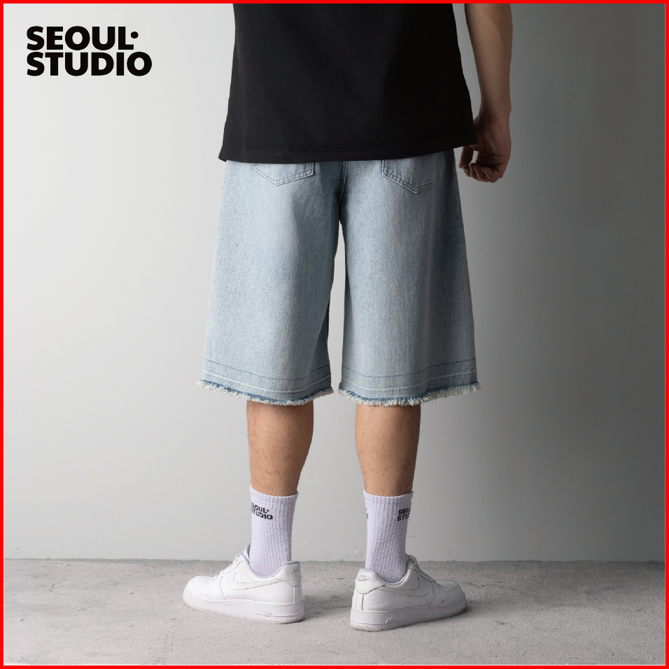 Seoulstudio Bermuda Pants Light Blue Jorts Denim Celana Jeans Short Pendek Baggy Pria Cowok