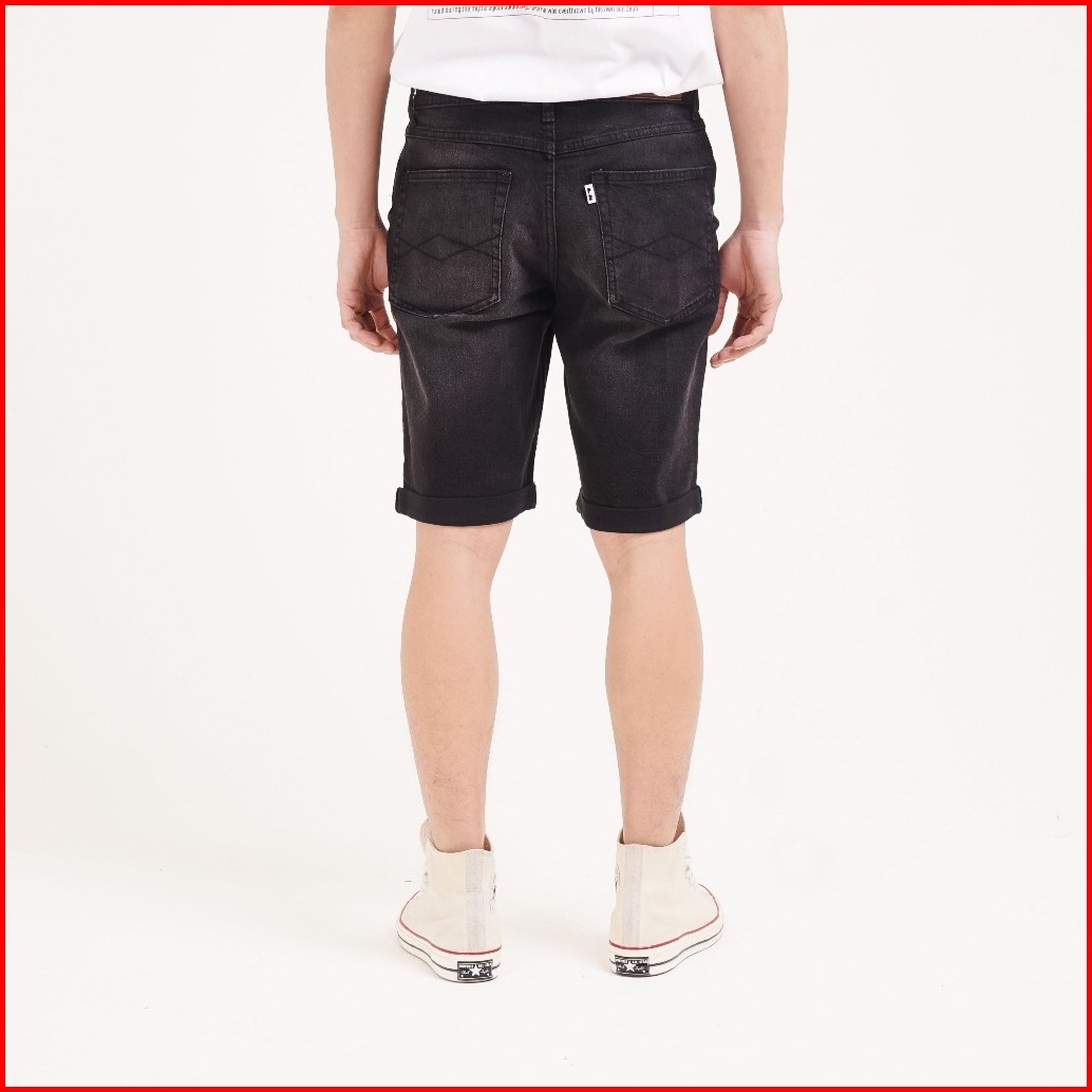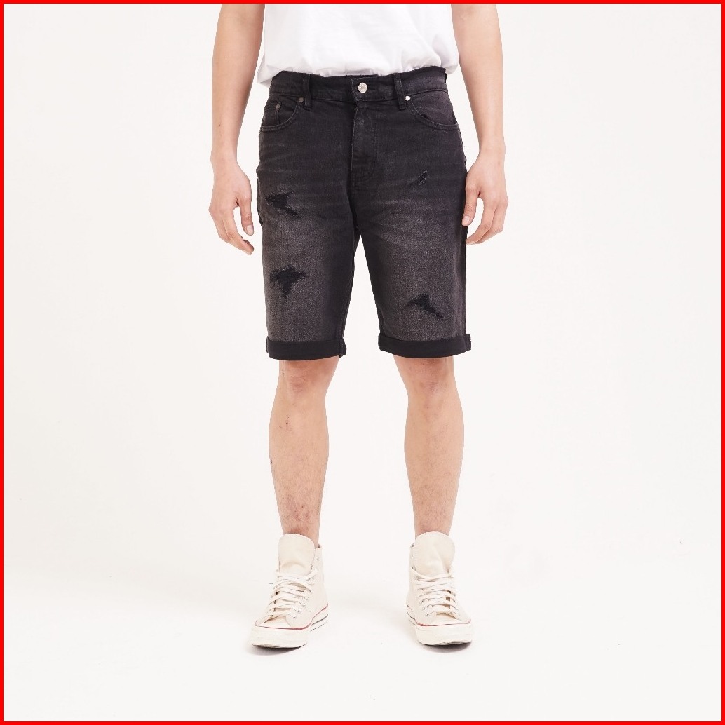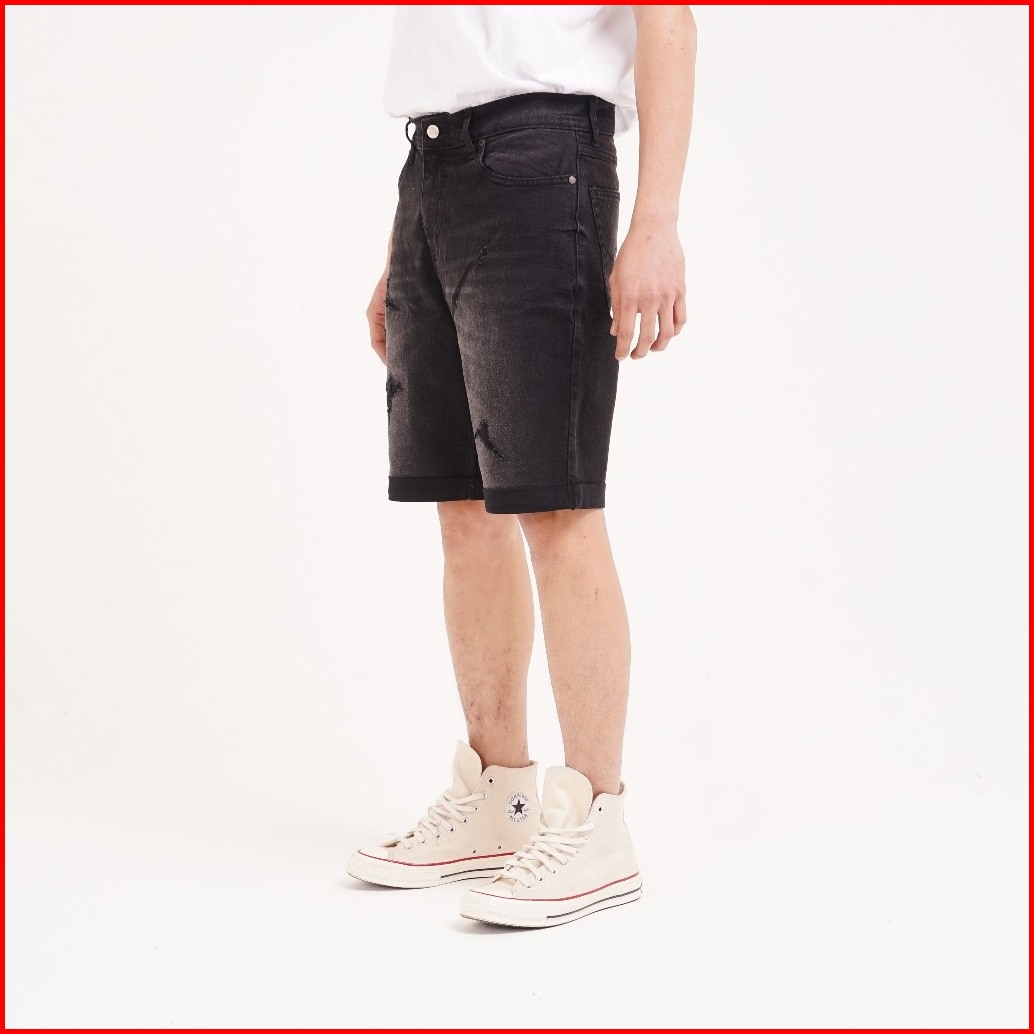 Port Replay Celana Jeans Pendek Pria Denim Hitam Rigid Boat