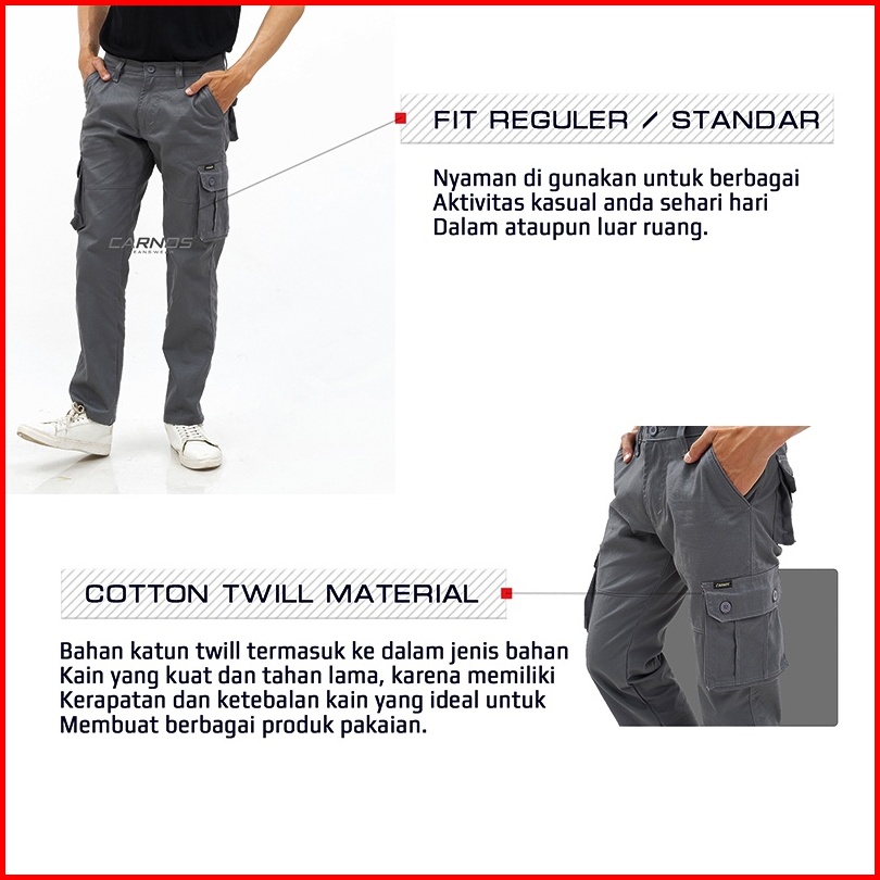 Carnos Rivers Celana Cargo Panjang Pria Reguler Abu Muda