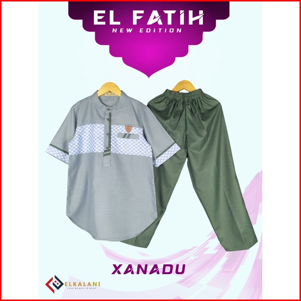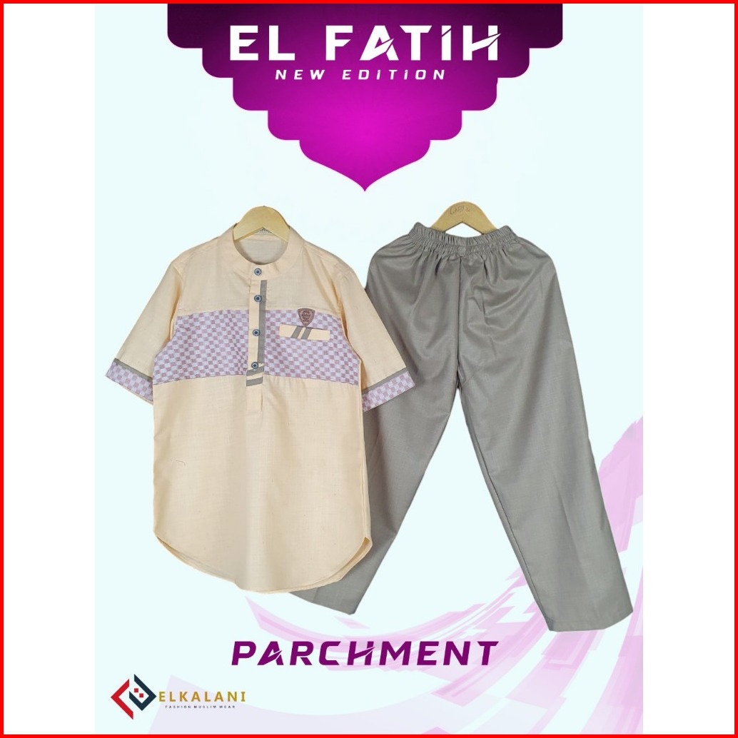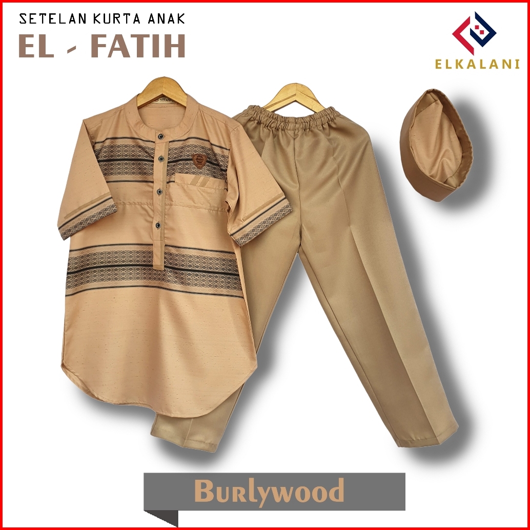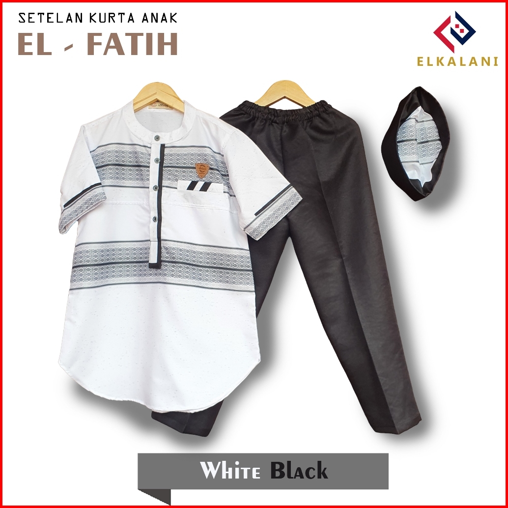 Kurta El-fatih Setelan Kurta Anak Lengan Pendek Motif Songket Usia 4-13 Tahun