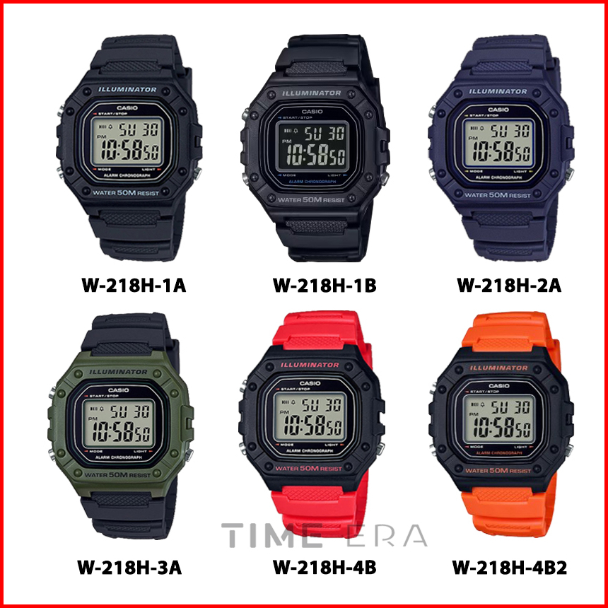 Casio General W-218h-1bvdf W-218h-1a W218h-2a 3a 4a 4b Jam Tangan Pria Digital Karet Hitam