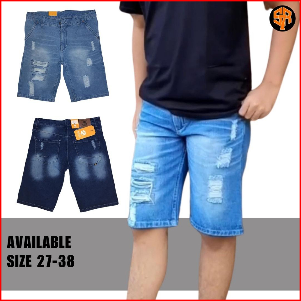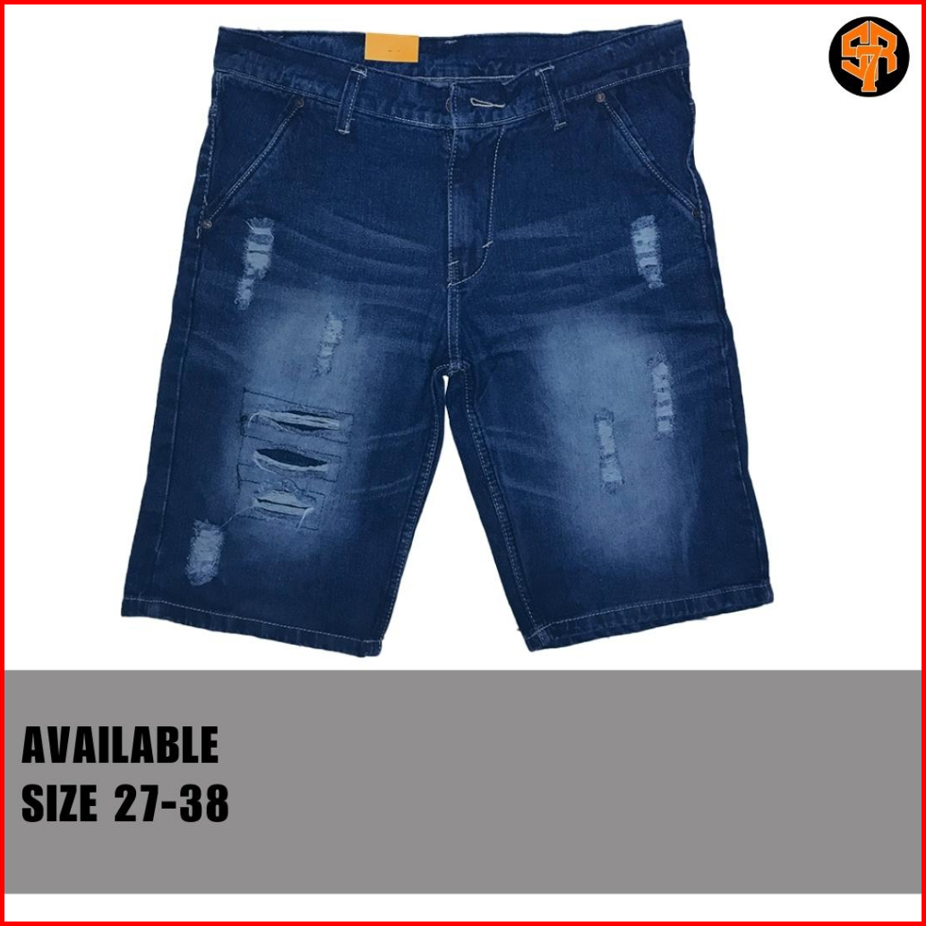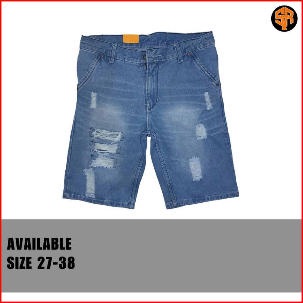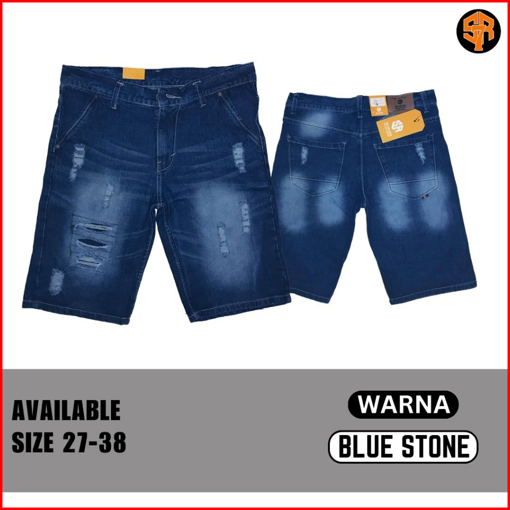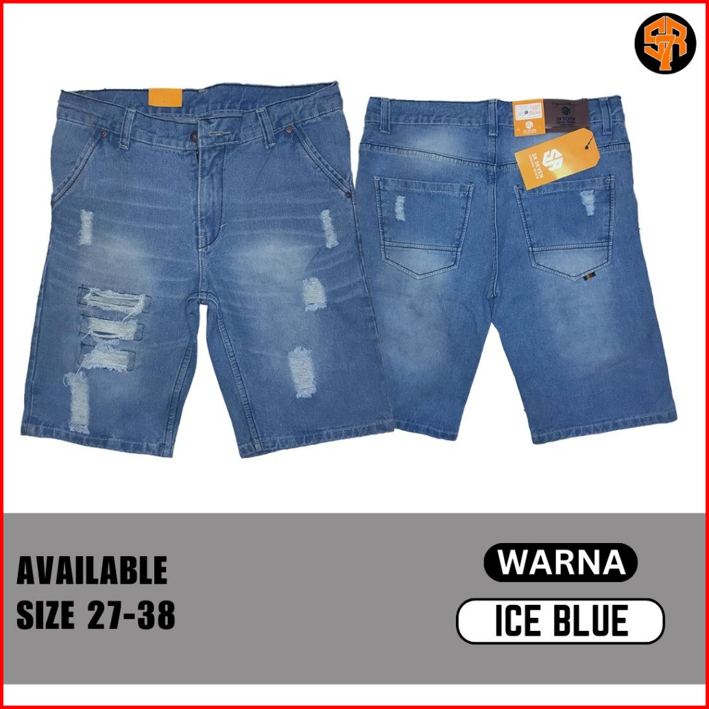 Srseven7 Celana Jeans Pendek Pria Model Sobek Original