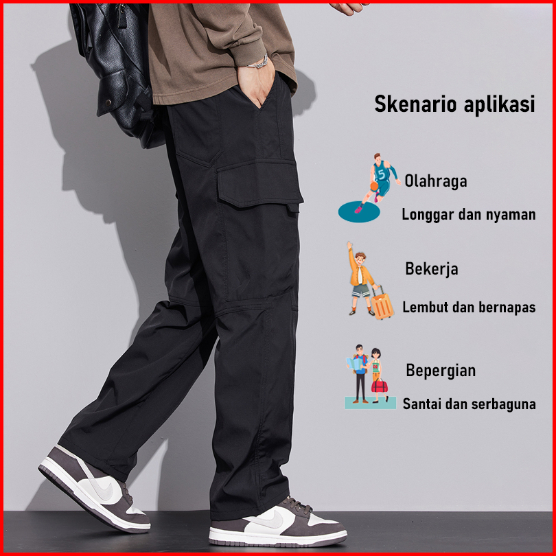 Celana Cargo Panjang Pria Fashion Korean Style Loose Pants Pria Outdoor Cargo Pants Celana Pria