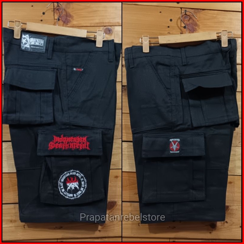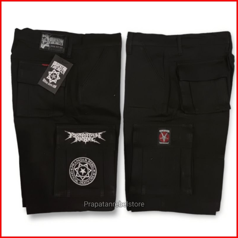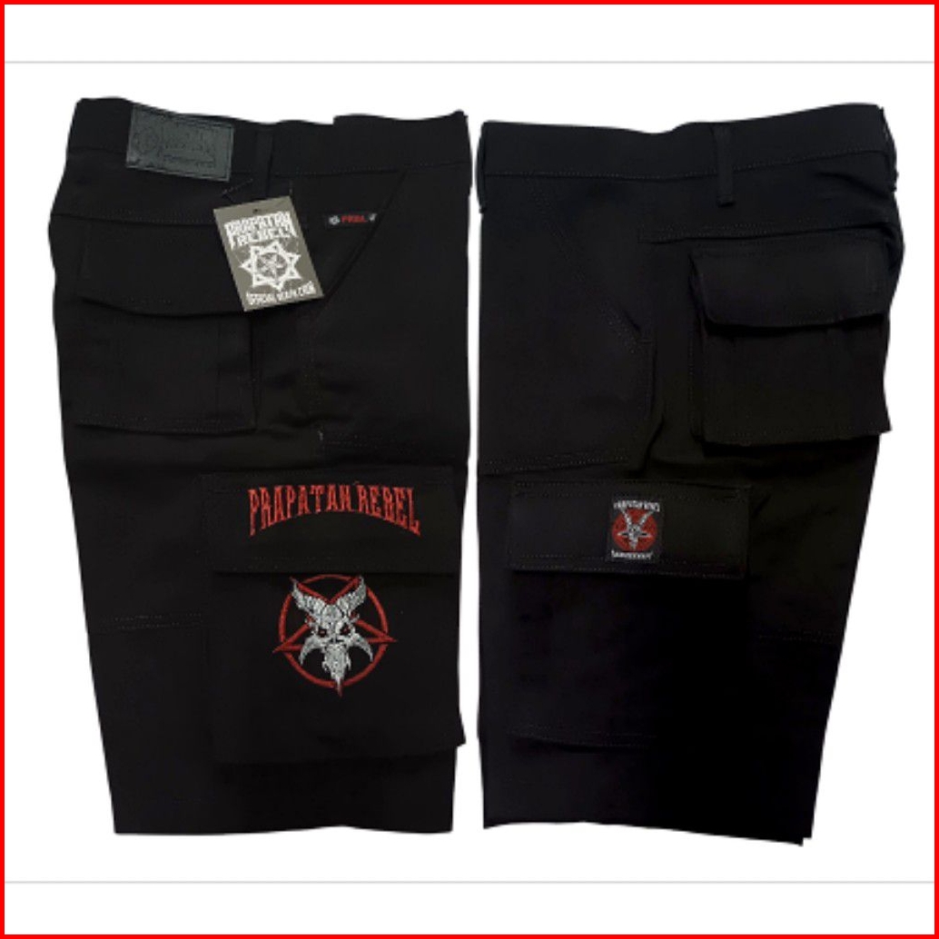 Celana Cargo Pendek Hitam Kanvas Twill Prapatan Rebel