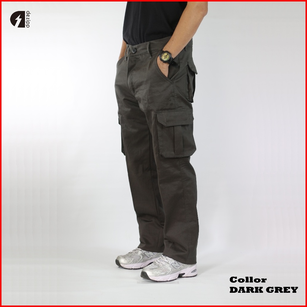 Dezipp Celana Cargo Pria Abu Tua Ukuran S - 5xl