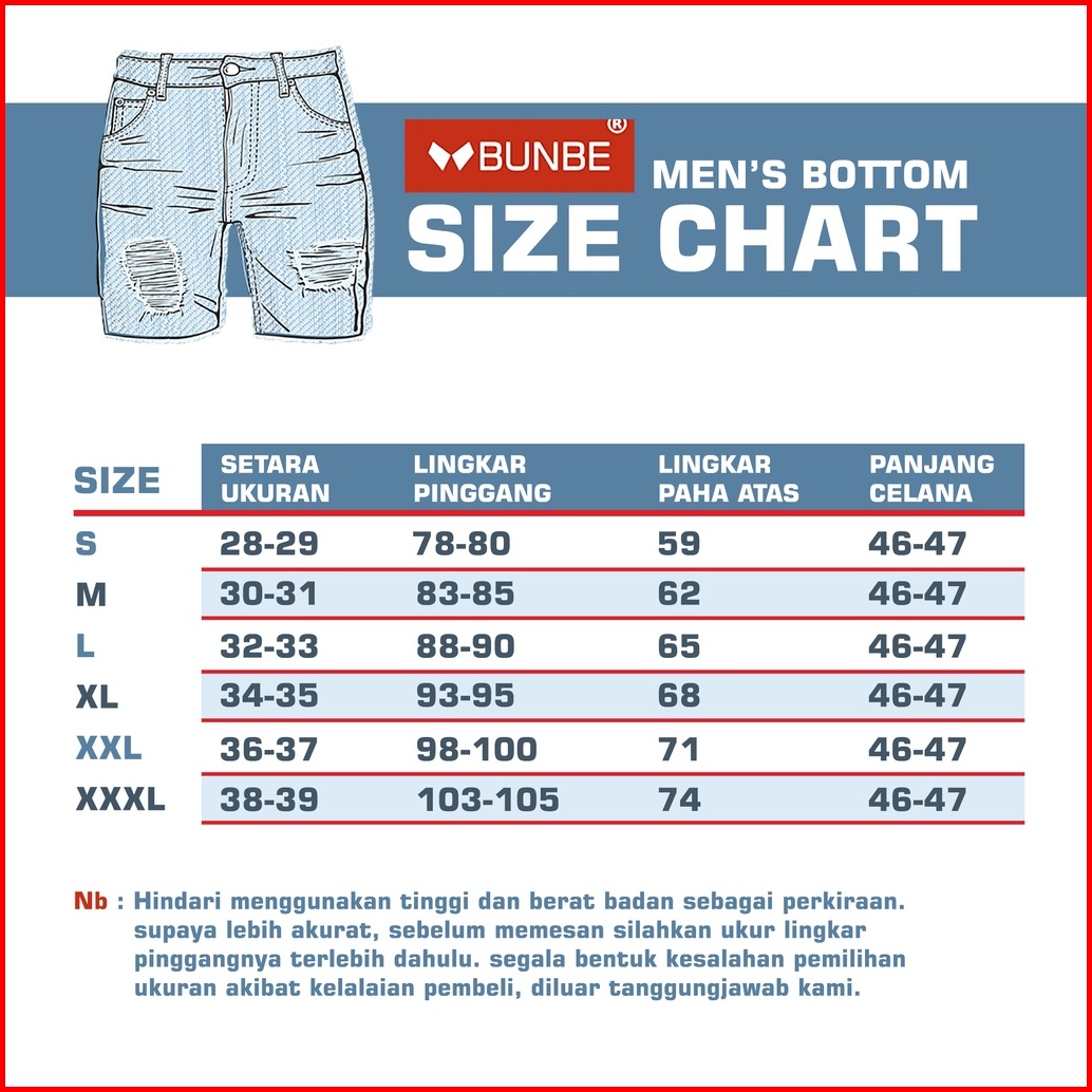 S setara 28/29, M setara 30/31, L setara 32/33, XL setara 34/35, XXL setara 36/37, XXXL/4L setara 38/39