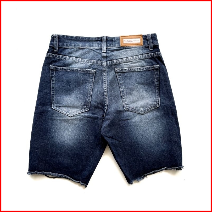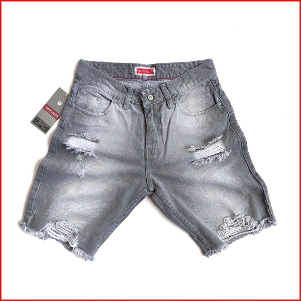 Bunbe - Celana Jeans Pendek Sobek Bermuda Pria