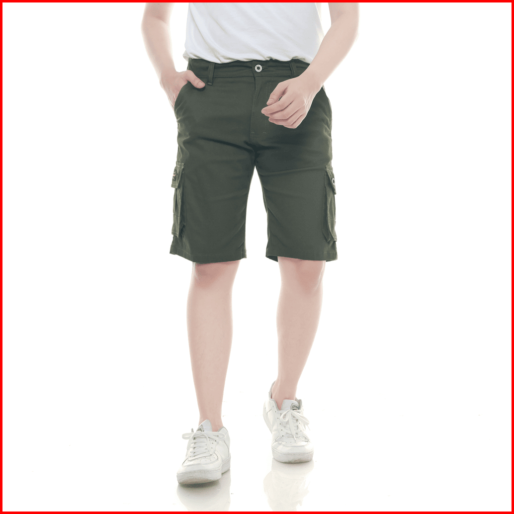 Zweckout Label Short Cargo Pants Celana Cargo Pendek Pria Kanvas Twill Slim Fit Jumbo Army