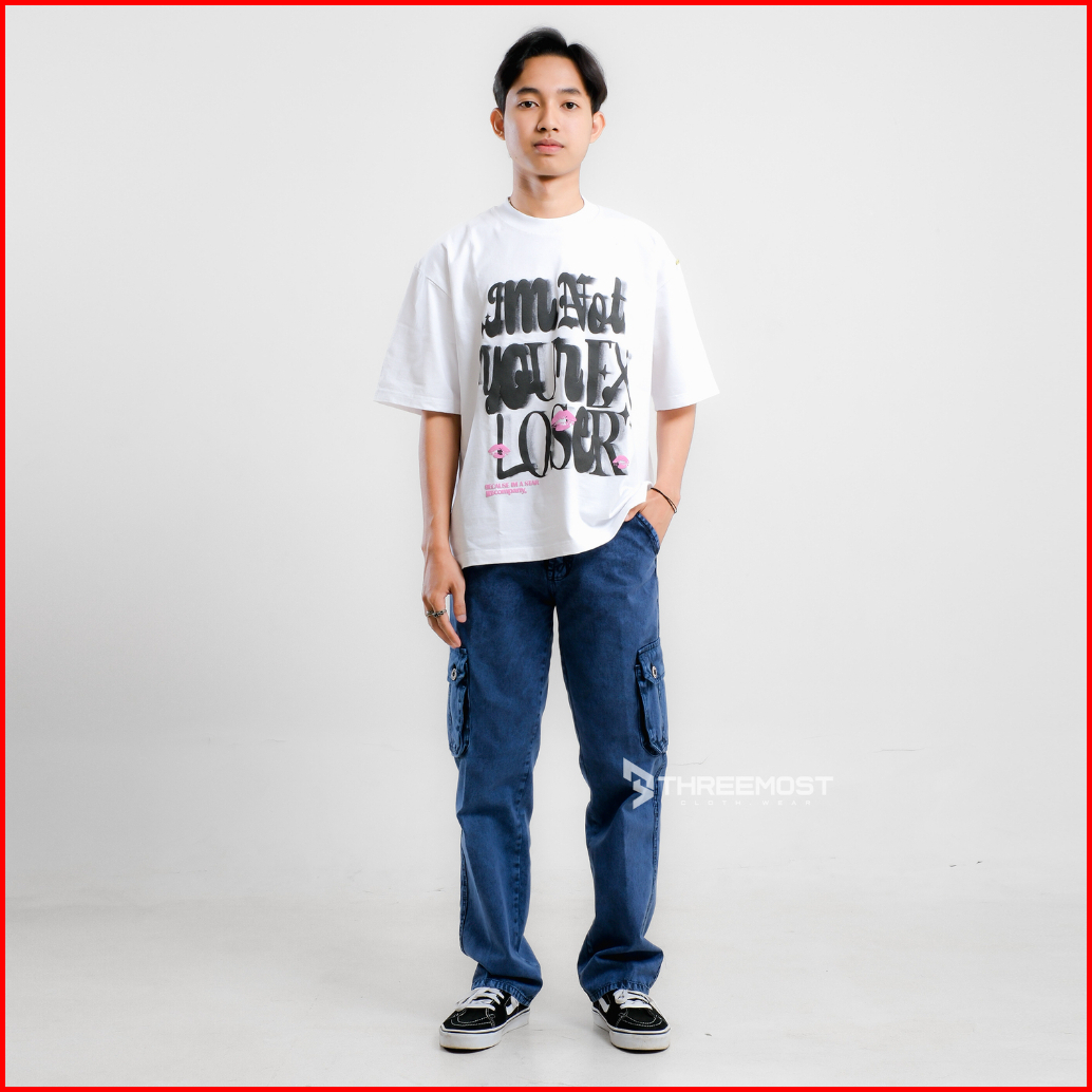 Threemost - Celana Panjang Cargo Pria Jeans Long Cargo Reguler Standard Series Edition Warna Wash.