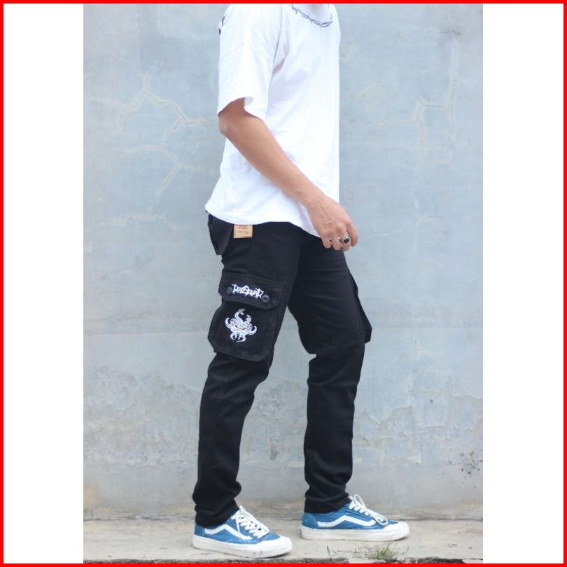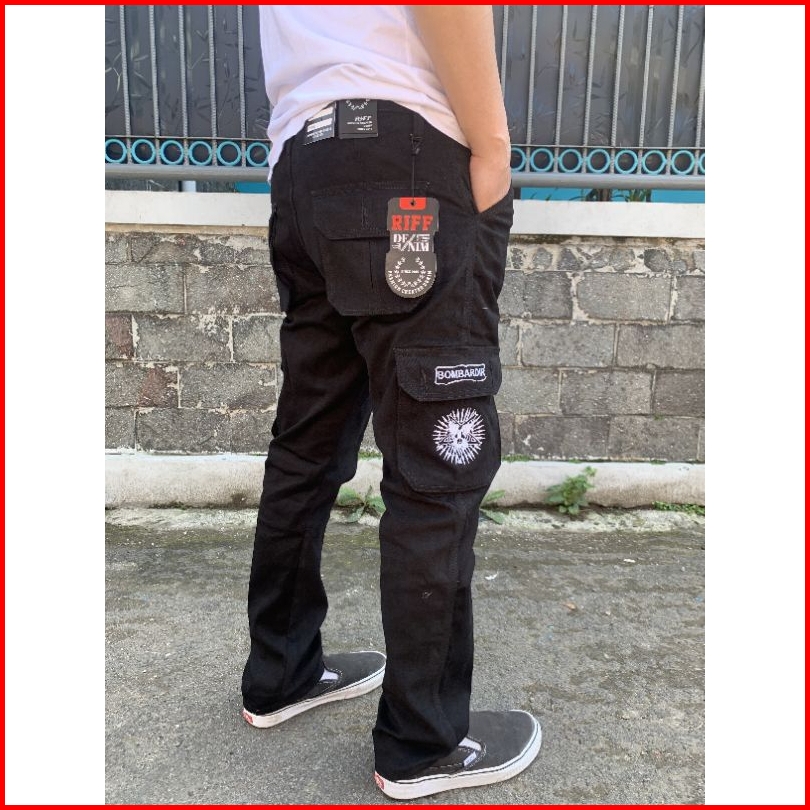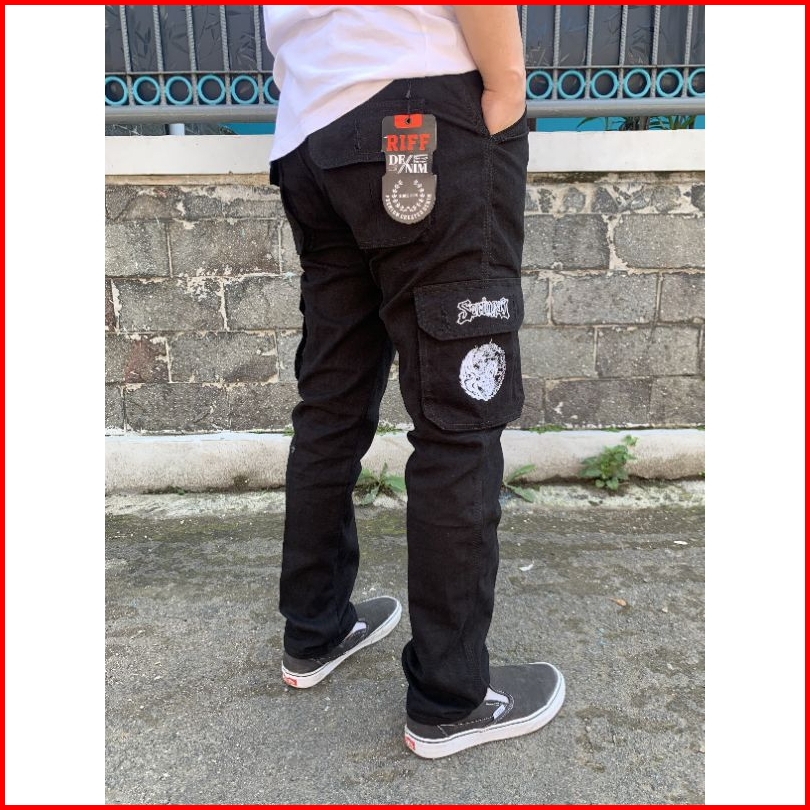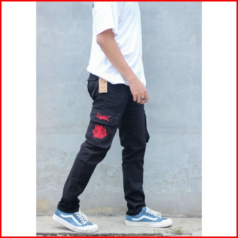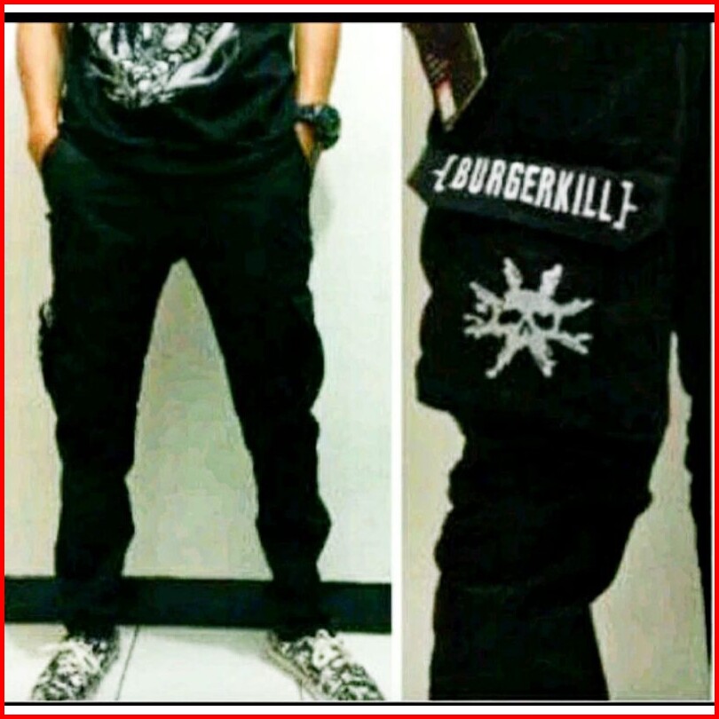 Celana Panjang Cargo Cowok Bordiran Burgerkill Size 28-44 Cocok Untuk Remaja Dewasa Celana Cargo Bordiran Music Burgerki