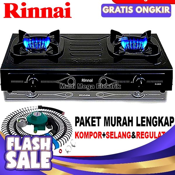 GRATIS ONGKIR/KOMPOR GAS RINNAI 2 TUNGKU RI 522E STAINLESS / RI 202S / RI 302S / RI 522S TEFLON PAKET SELANG REGULATOR