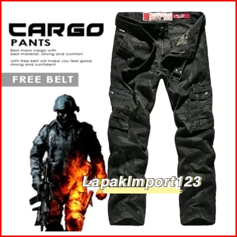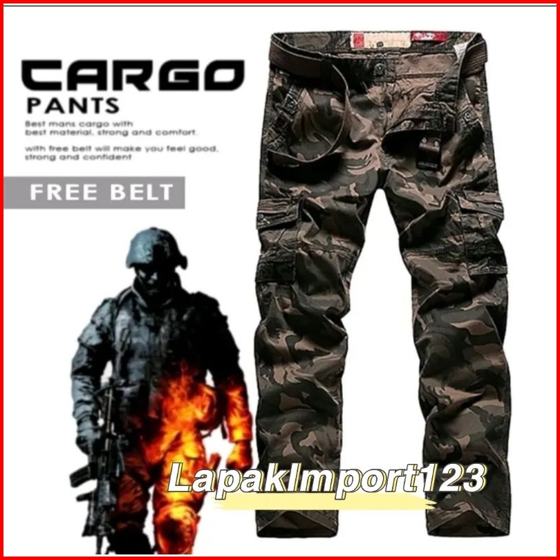 Lapakimport123 Celana Cargo Loreng Panjang Celana Pria Celana Bawangcheng Free Sabuk