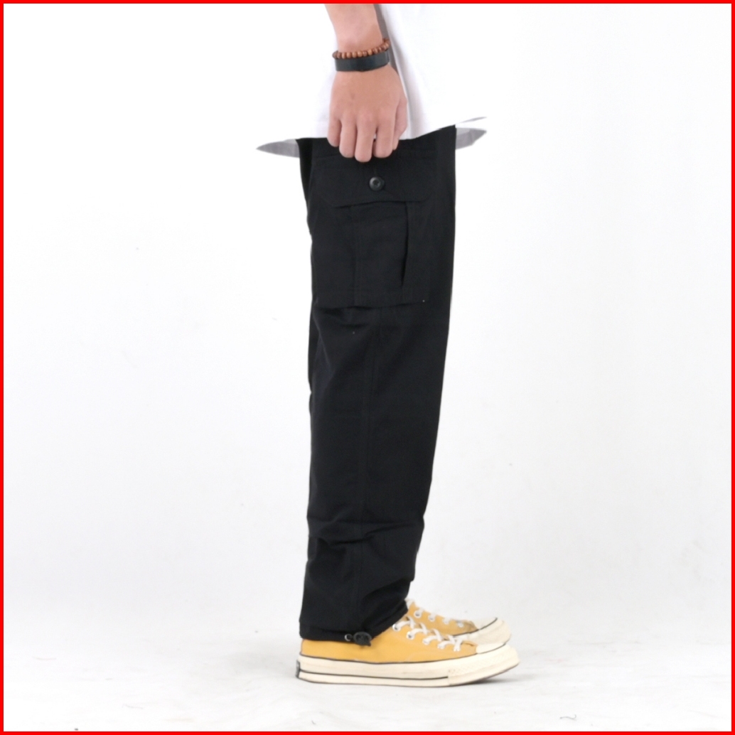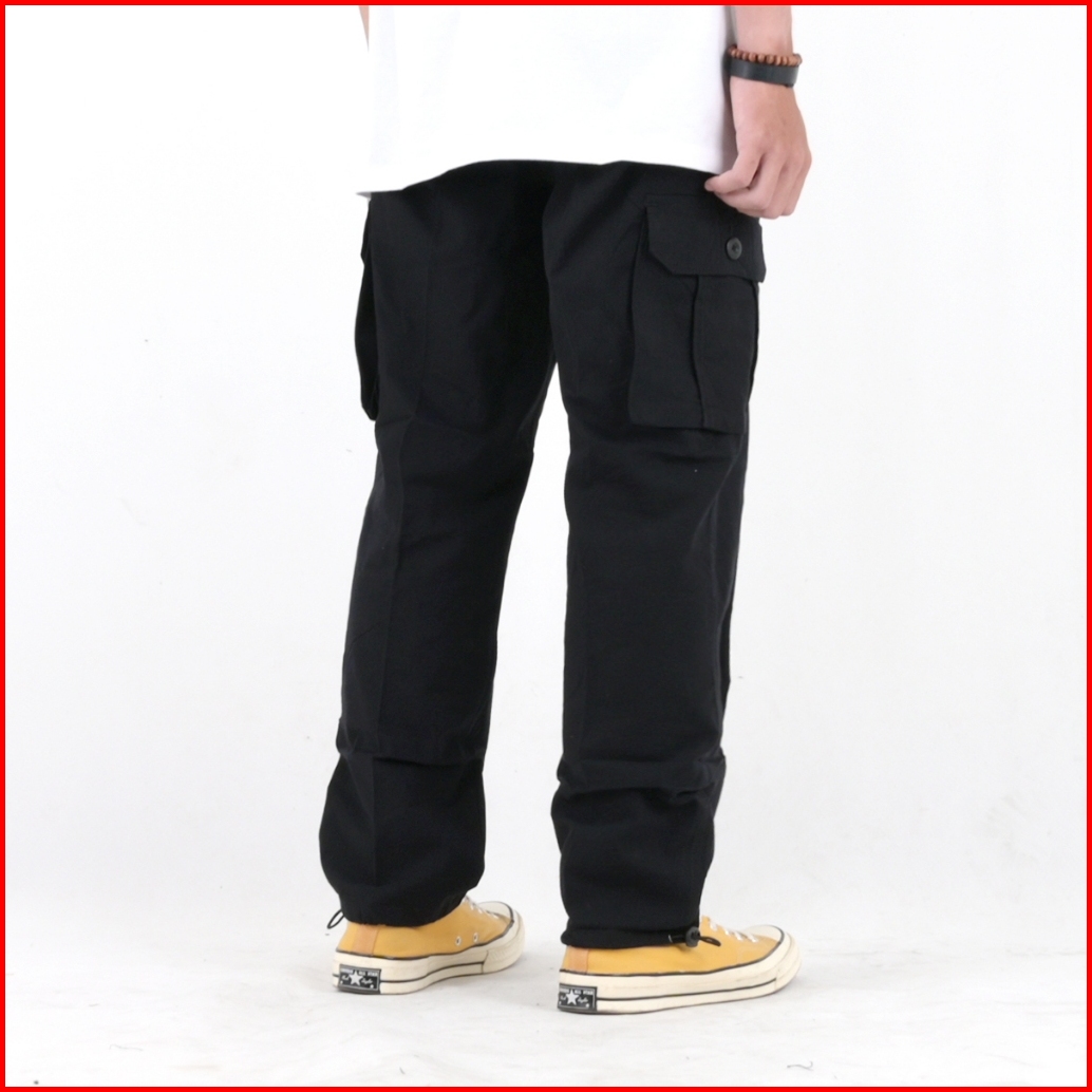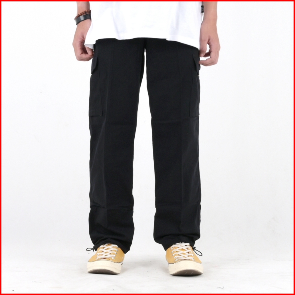 Mickout Hodge Cargo Pants - Celana Panjang Canvas Cotton Relaxed Fit Pria Unisex - Hitam