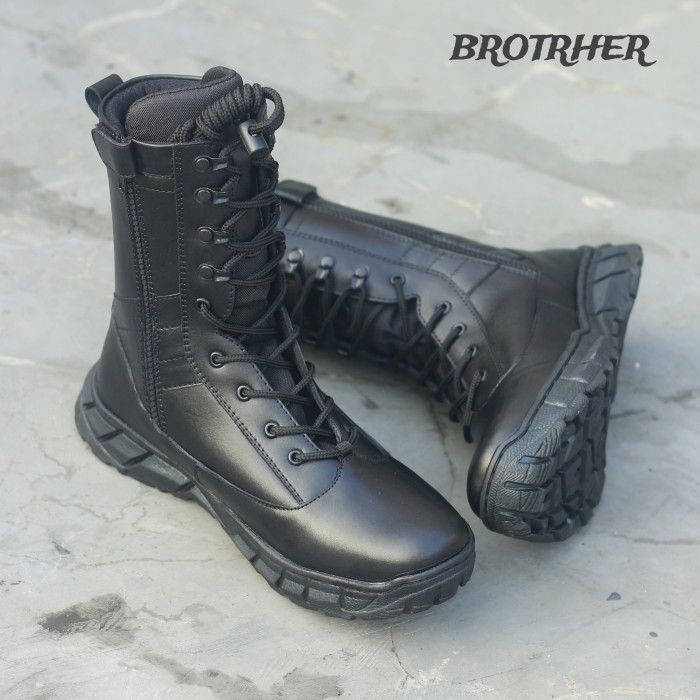 Sepatu Pdl Kulit Tni Polri Full kulit Pakai Resleting merk Brotrher