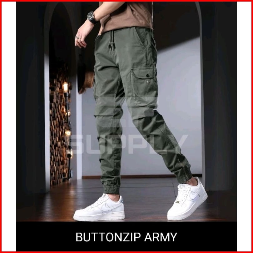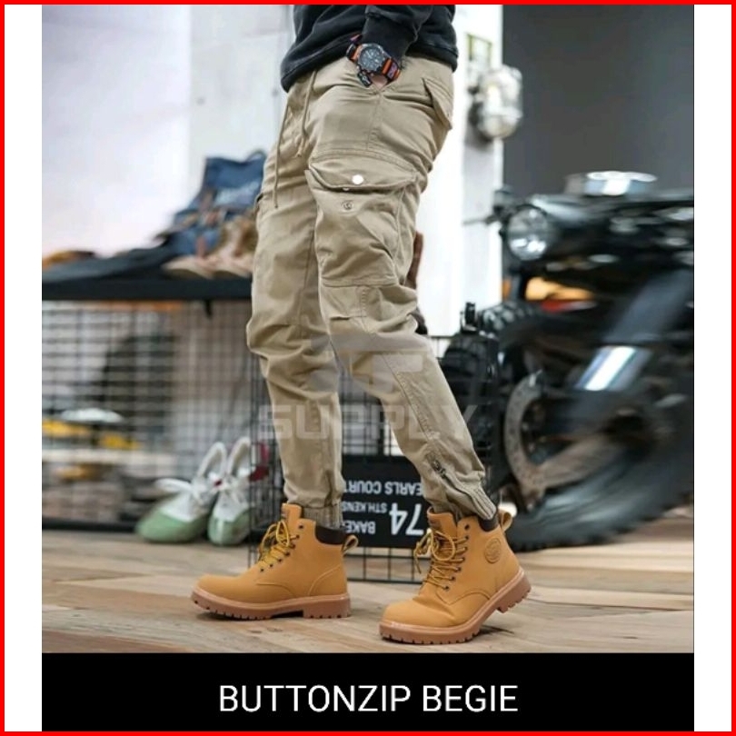 Celana Cargo Buttonzip Begie Celana Jogger Cargo Pria Wanita Celana Cargo Panjang