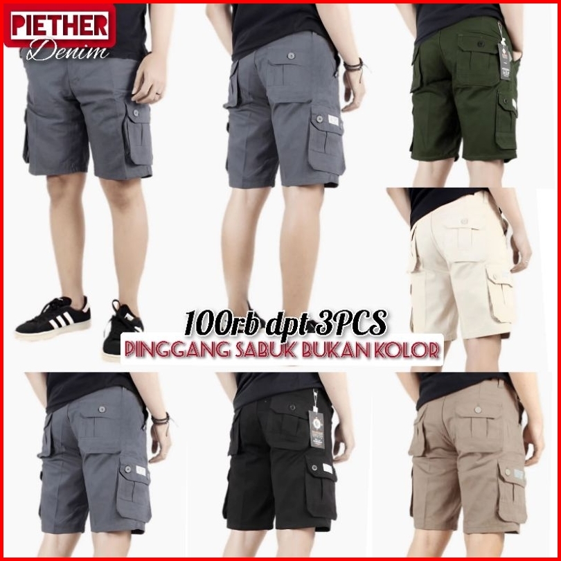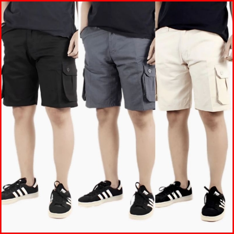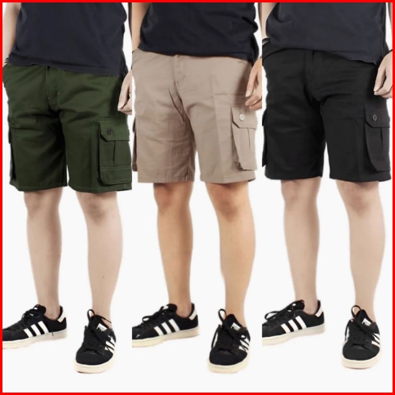 Bundle 3 Pcs Hemat Celana Cargo Pendek Pria Outdoor Kain Tebal American Drill Katun Premium