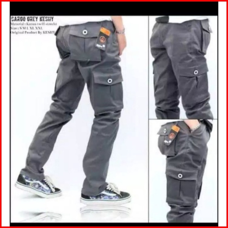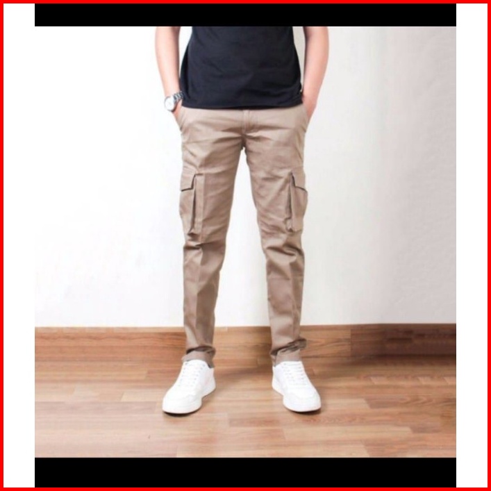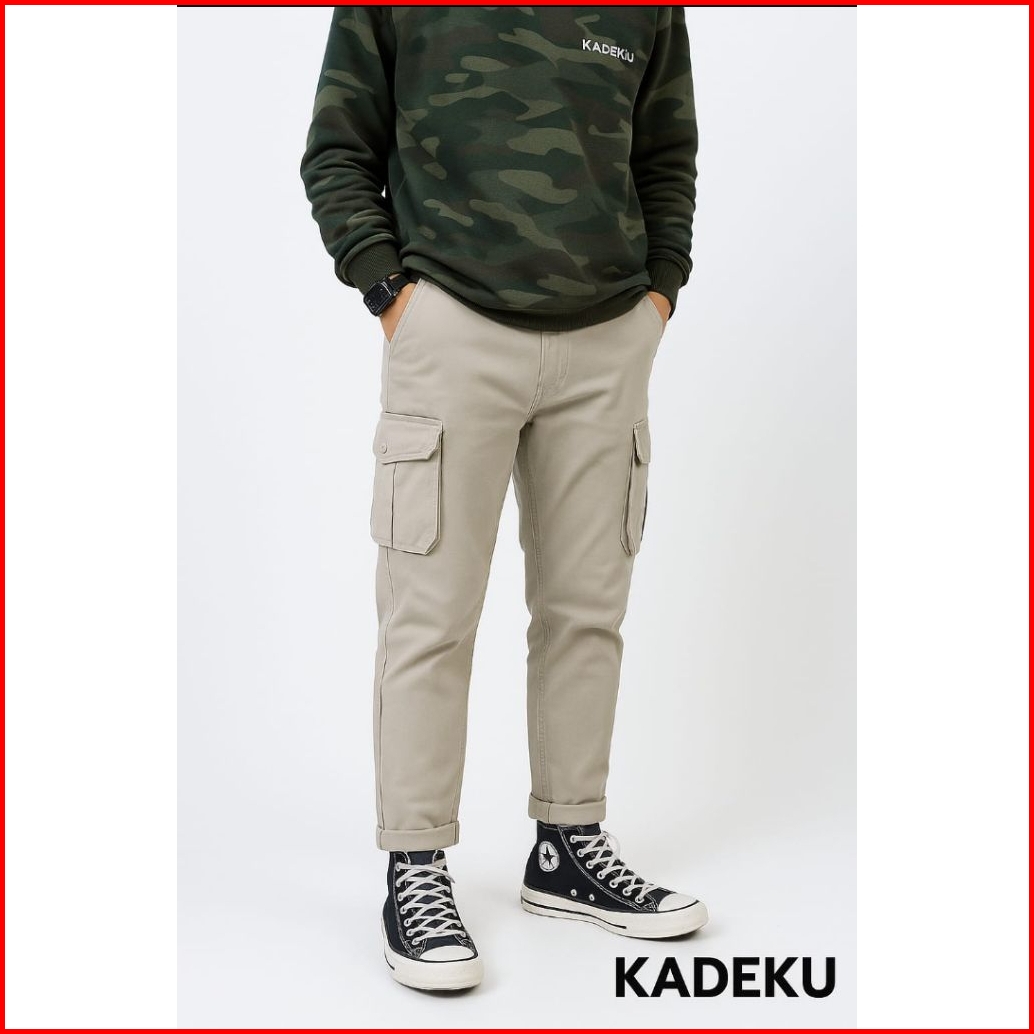 Merk Original Dennys Apparel Celana Cargo Panjang Slimfit Pria