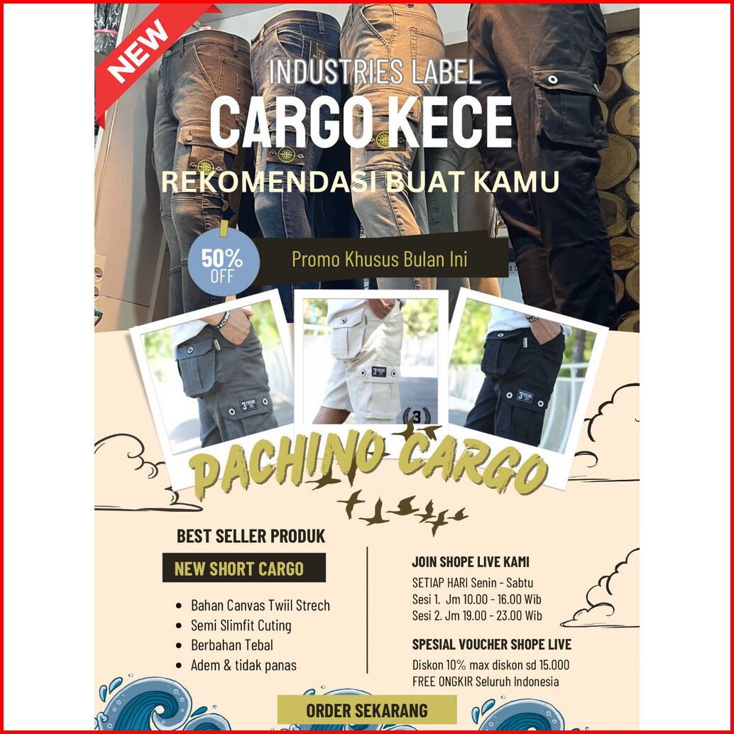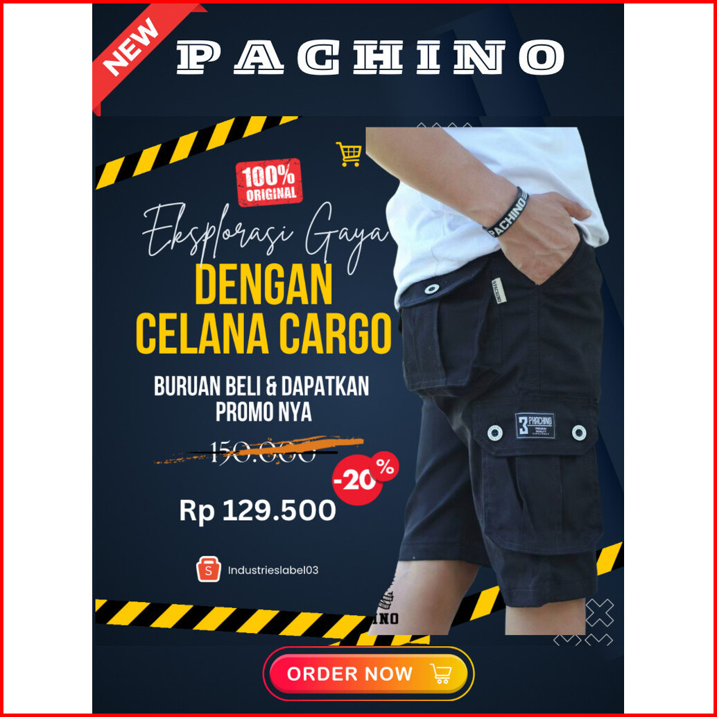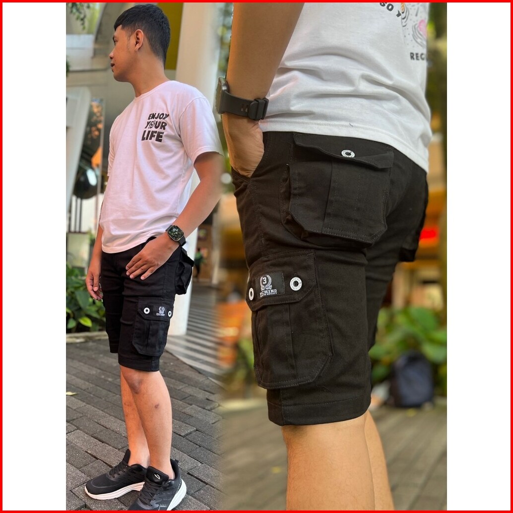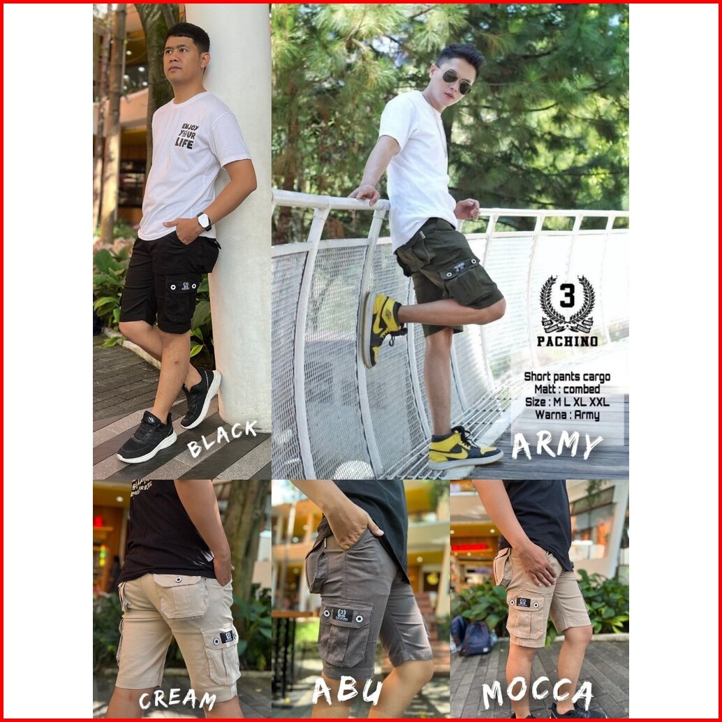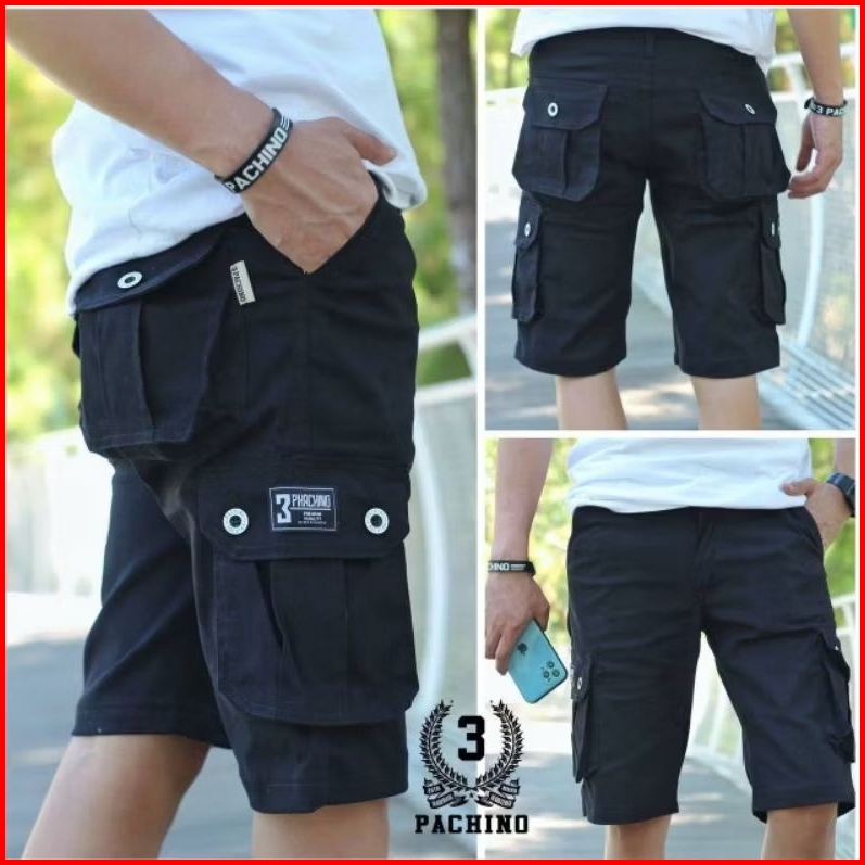 Cargo Pendek Original Pachino Kargo Celana Outdor Pria Distro Warna Hitam Sericpp101