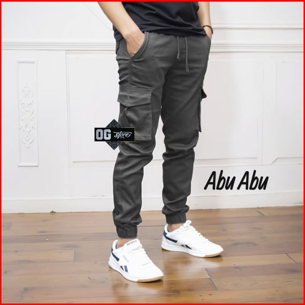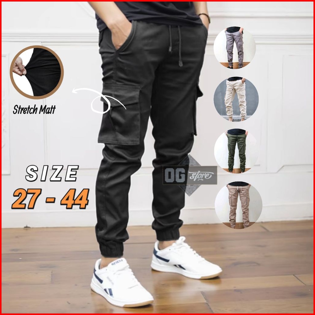 Celana Panjang Pria Jogger Pants Cargo Korea Style Big Size Jumbo Bahan Melar Size 27-44
