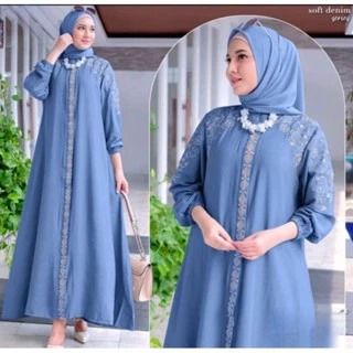 Inayah Dress Kondangan Modern Gamis Polo Linen Mix Bordir Cantik Dress Lebaran 2026 Dress Pesta Kekinian